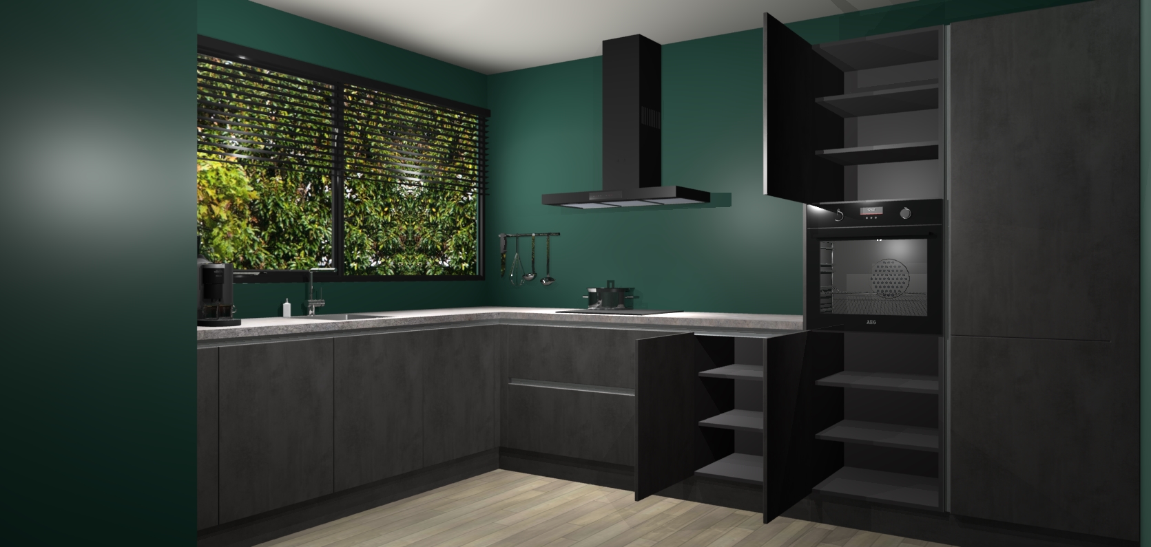 Met een modern, tijdloos design en ruime opslagruimte, zult u zich in no-time thuis voelen in uw nieuwe keuken. Uw leven wordt eenvoudiger met de soft-close deuren die voor het ultieme stille comfort zorgen - geen geluid dat u stoort terwijl u kookt. Ook is de keuken voorzien van 5 ingebouwde apparaten: een oven, inductie kookplaat, afzuigkap, vaatwasser en koelkast. Deze kunnen gemakkelijk na bestelling worden bijgewerkt naar AEG - waardoor uw luxe ervaring compleet is.