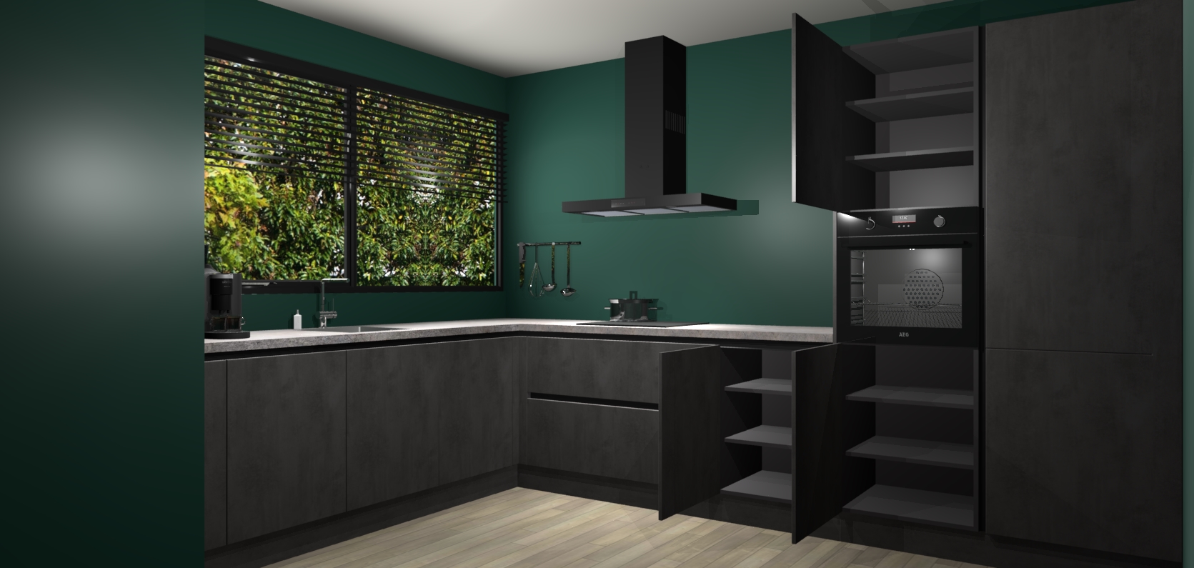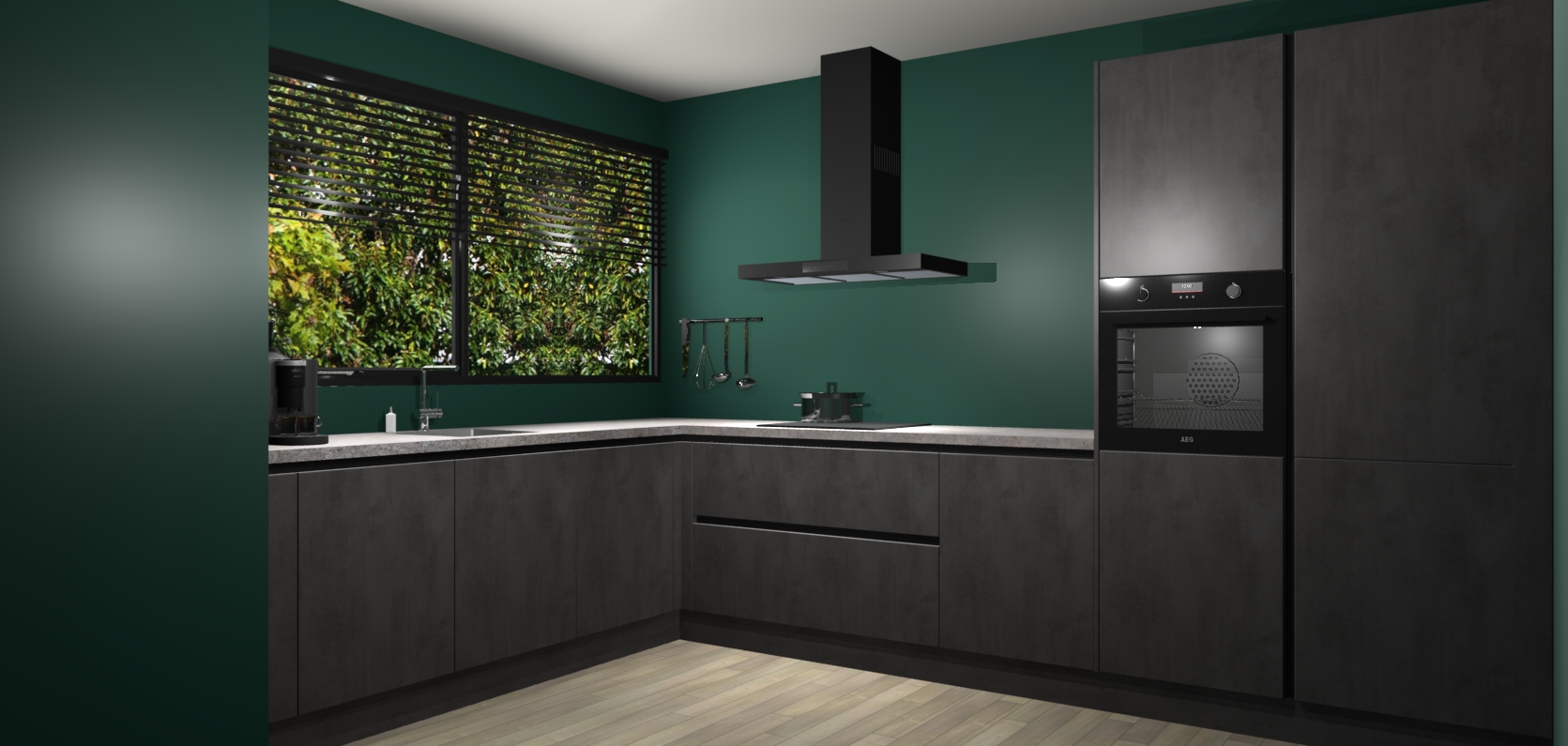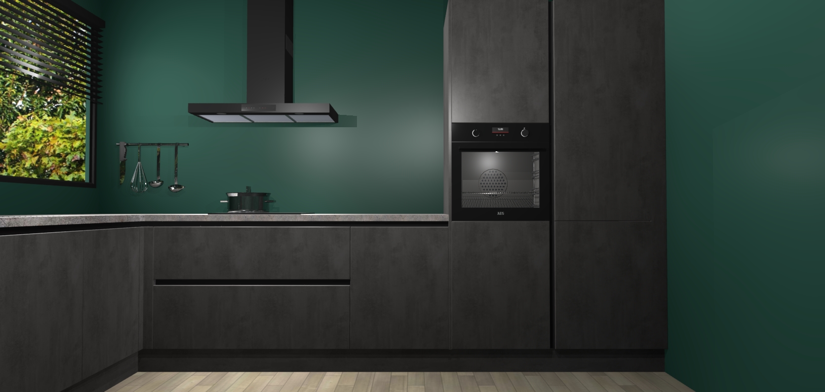 Met een modern, tijdloos design en ruime opslagruimte, zult u zich in no-time thuis voelen in uw nieuwe keuken. Uw leven wordt eenvoudiger met de soft-close deuren die voor het ultieme stille comfort zorgen - geen geluid dat u stoort terwijl u kookt. Ook is de keuken voorzien van 5 ingebouwde apparaten: een oven, inductie kookplaat, afzuigkap, vaatwasser en koelkast. Deze kunnen gemakkelijk na bestelling worden bijgewerkt naar AEG - waardoor uw luxe ervaring compleet is.
