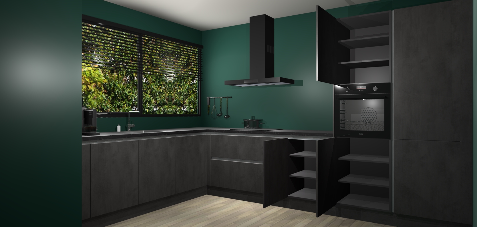 Met een modern, tijdloos design en ruime opslagruimte, zult u zich in no-time thuis voelen in uw nieuwe keuken. Uw leven wordt eenvoudiger met de soft-close deuren die voor het ultieme stille comfort zorgen - geen geluid dat u stoort terwijl u kookt. Ook is de keuken voorzien van 5 ingebouwde apparaten: een oven, inductie kookplaat, afzuigkap, vaatwasser en koelkast. Deze kunnen gemakkelijk na bestelling worden bijgewerkt naar AEG - waardoor uw luxe ervaring compleet is.