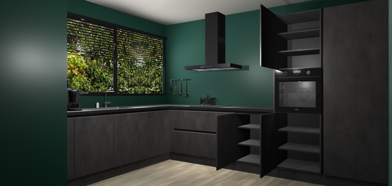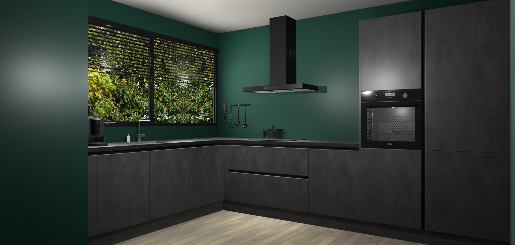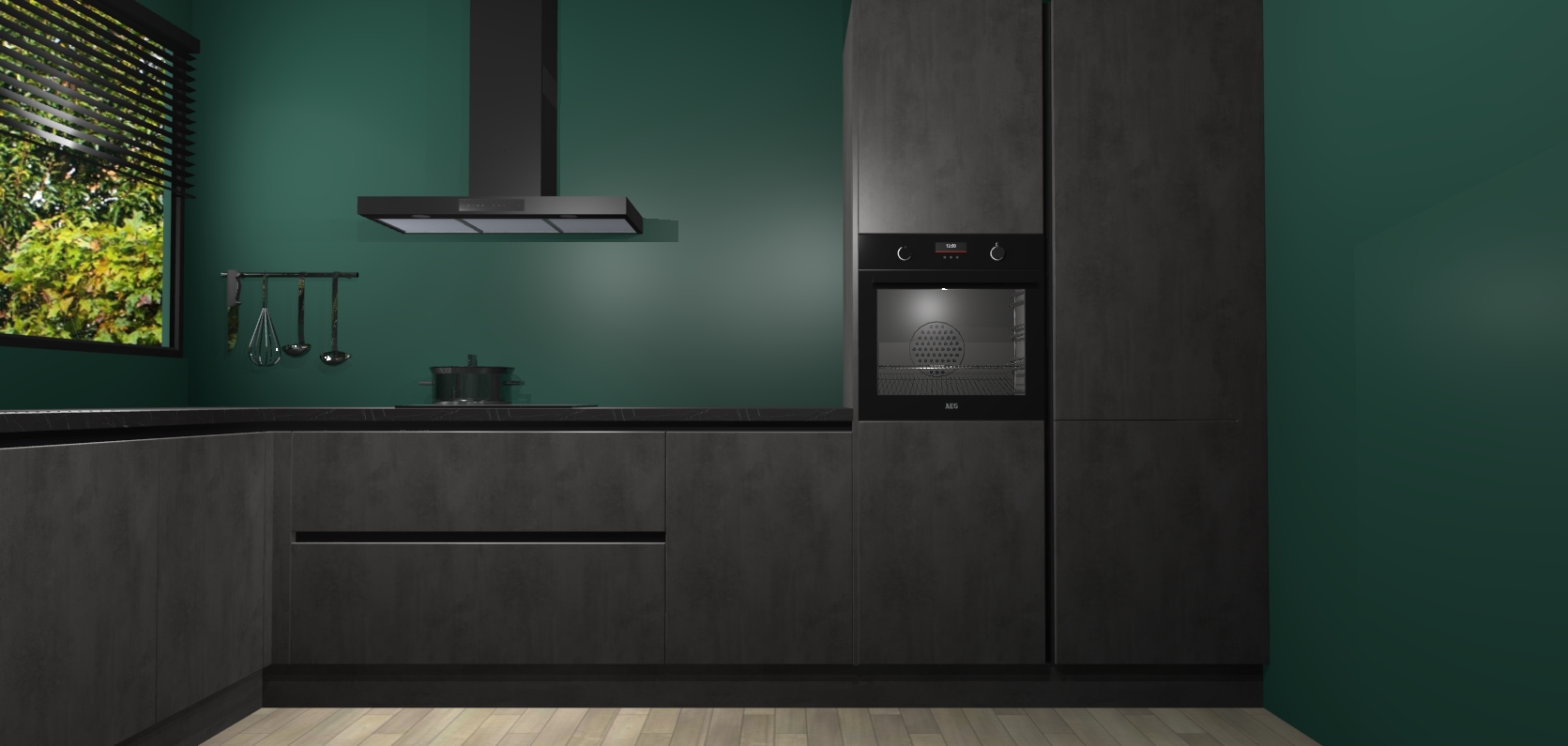 Met een modern, tijdloos design en ruime opslagruimte, zult u zich in no-time thuis voelen in uw nieuwe keuken. Uw leven wordt eenvoudiger met de soft-close deuren die voor het ultieme stille comfort zorgen - geen geluid dat u stoort terwijl u kookt. Ook is de keuken voorzien van 5 ingebouwde apparaten: een oven, inductie kookplaat, afzuigkap, vaatwasser en koelkast. Deze kunnen gemakkelijk na bestelling worden bijgewerkt naar AEG - waardoor uw luxe ervaring compleet is.