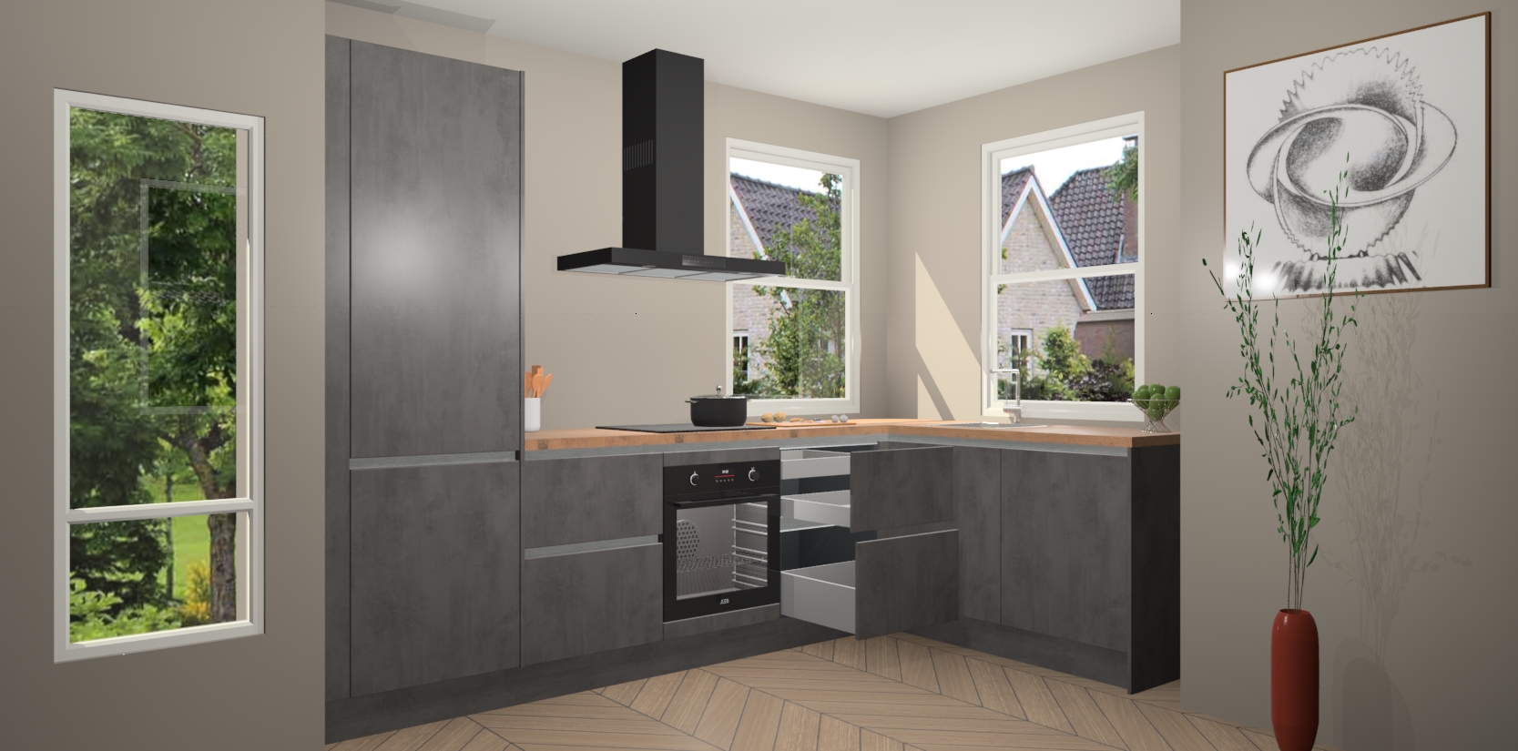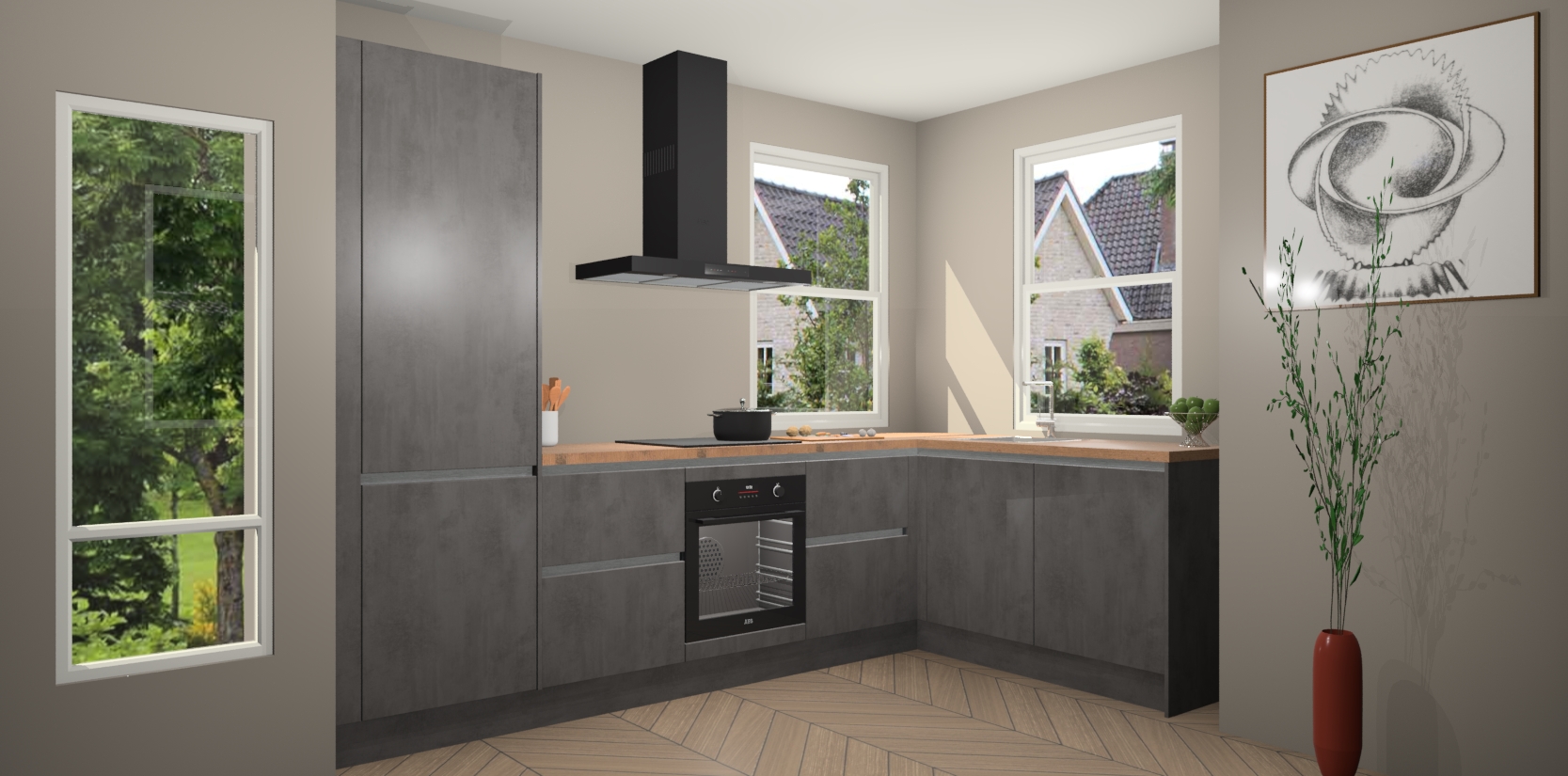 Welkom bij de Beton Antraciet greeploze keuken Salzburg! Met een chique combinatie van een prachtig houten werkblad, klassiek design en altijd concurrerende prijzen is de Beton Antraciet greeploze keuken Salzburg de keuken van uw dromen! Deze keuken is perfect voor alle huisformaten en decorstijlen en straalt stijl en verfijning uit. Van het tijdloze design tot de functionele functies, er is geen betere manier om de look van uw woon- of kookruimte te verbeteren.