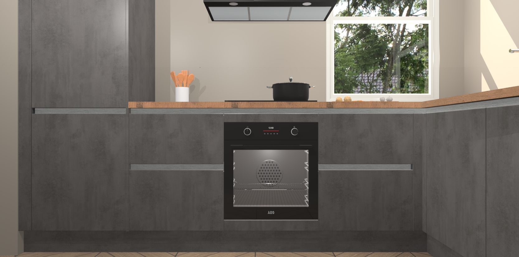 Wat maakt deze keuken zo bijzonder? Ten eerste geeft het houten werkblad uw ruimte een onmiskenbaar klassieke uitstraling. De natuurlijke afwerking roept warmte en elegantie op die nooit uit de mode zullen raken. Bovendien is het gemakkelijk schoon te houden en te onderhouden, zodat je er jarenlang plezier van kunt hebben. Als u op zoek bent naar extra gemak in uw keuken, dan heeft u bij het plaatsen van een bestelling bij ons ook de optie om uw toestellen te upgraden naar AEG-modellen - zo haalt u moderne innovatie van topmerken in apparatentechnologie rechtstreeks in huis.