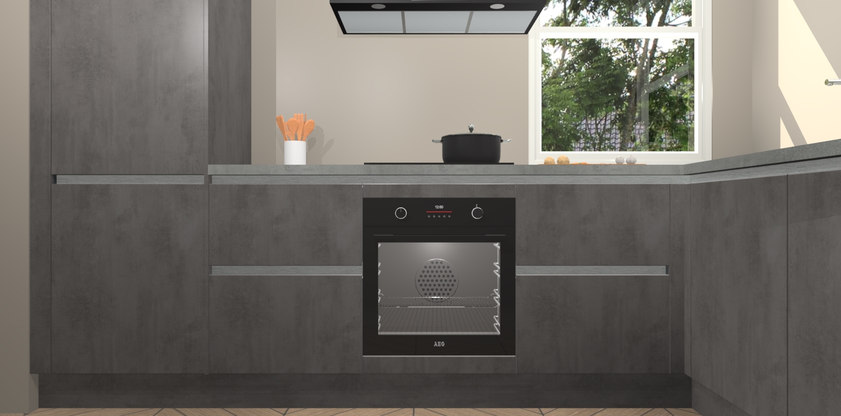 Wat maakt deze keuken zo bijzonder? Ten eerste geeft het houten werkblad uw ruimte een onmiskenbaar klassieke uitstraling. De natuurlijke afwerking roept warmte en elegantie op die nooit uit de mode zullen raken. Bovendien is het gemakkelijk schoon te houden en te onderhouden, zodat je er jarenlang plezier van kunt hebben. Als u op zoek bent naar extra gemak in uw keuken, dan heeft u bij het plaatsen van een bestelling bij ons ook de optie om uw toestellen te upgraden naar AEG-modellen - zo haalt u moderne innovatie van topmerken in apparatentechnologie rechtstreeks in huis.