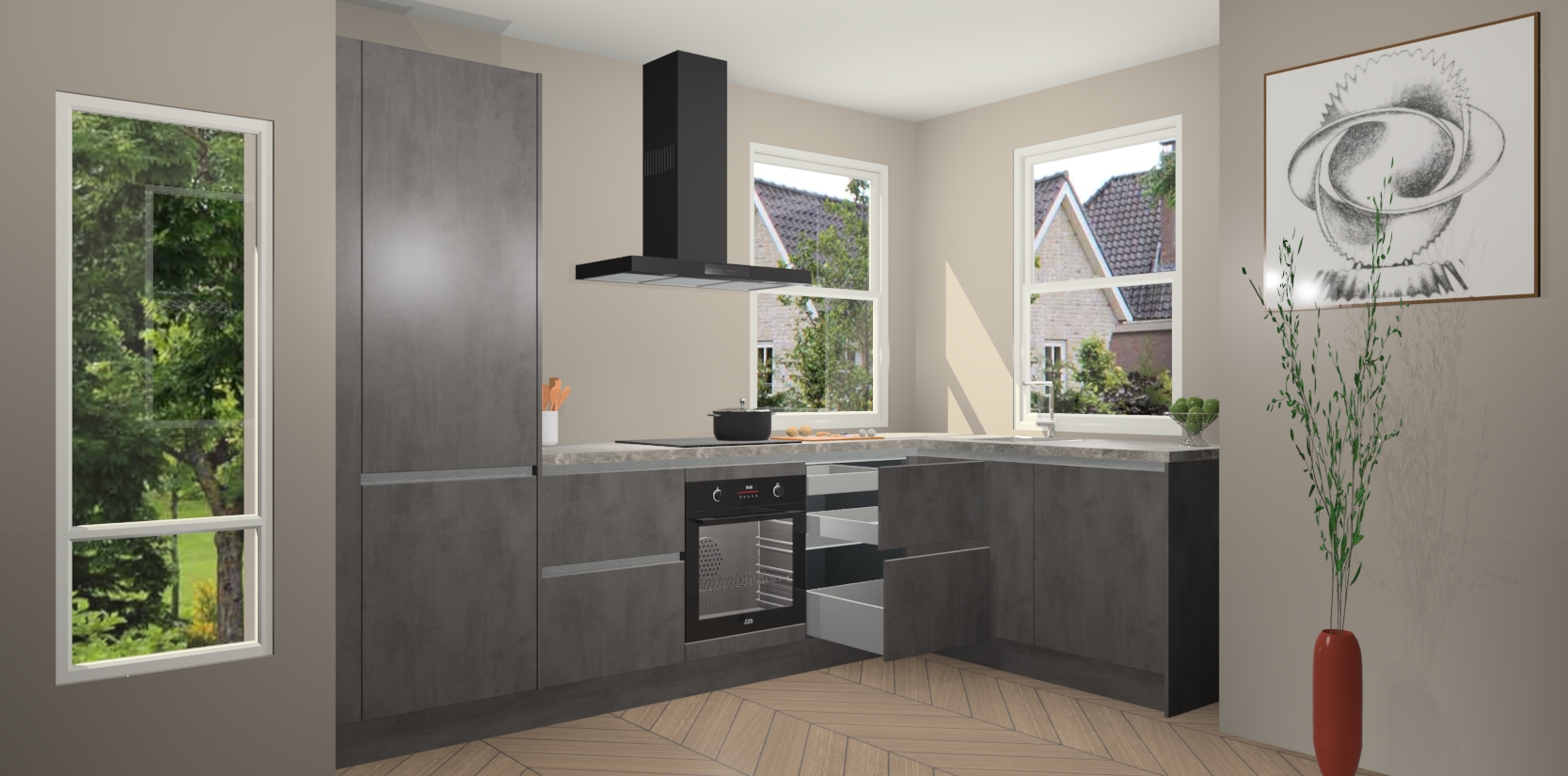Mis deze geweldige kans niet! Met een Beton Antraciet greeploze keuken Salzburg krijgt u schoonheid van kwaliteit voor een overslaanbare prijs - wat wilt u nog meer? Van een stijlvol nieuw middelpunt in uw leefruimte en gemakkelijke upgrademogelijkheden, verwen uzelf vandaag nog met de Beton Antraciet greeploze keuken Salzburg!