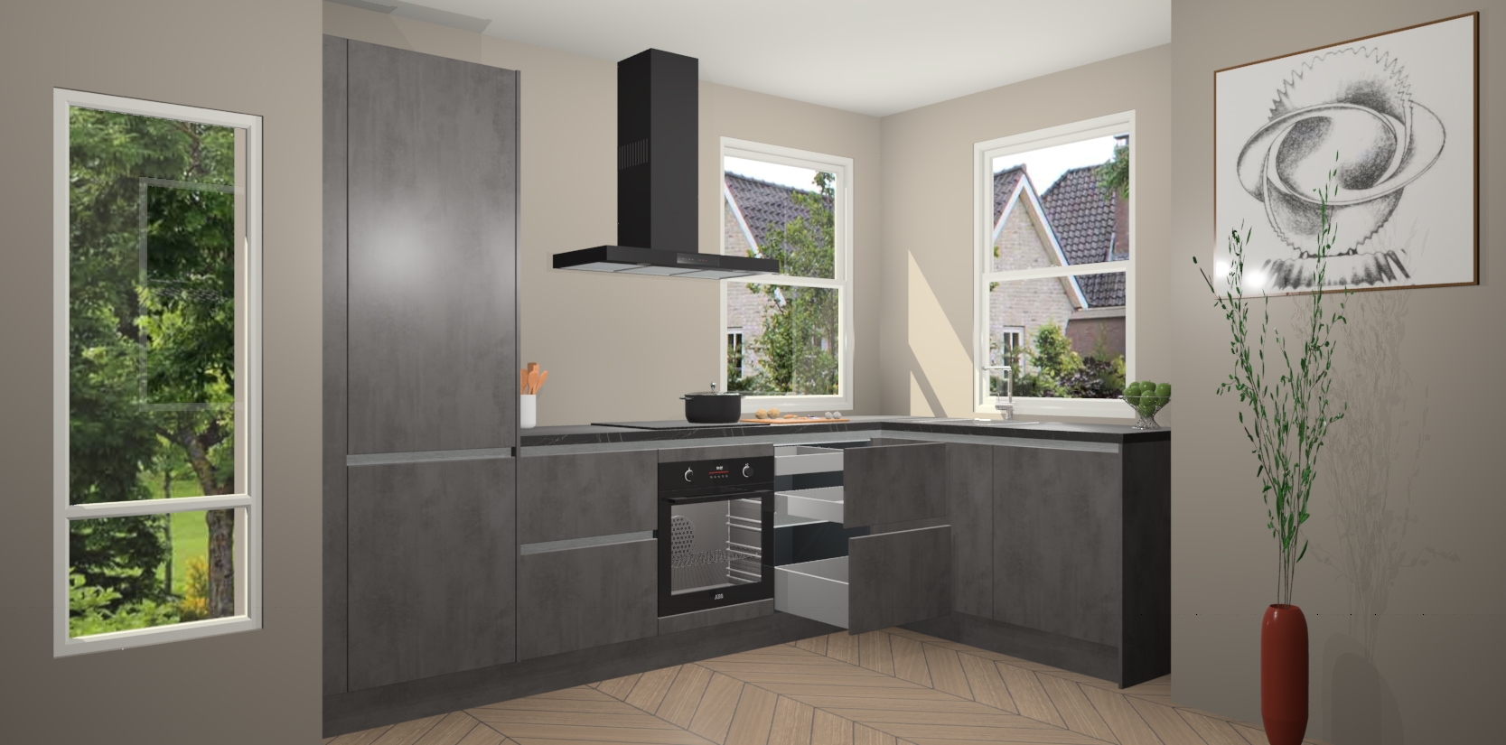 Mis deze geweldige kans niet! Met een Beton Antraciet greeploze keuken Salzburg krijgt u schoonheid van kwaliteit voor een overslaanbare prijs - wat wilt u nog meer? Van een stijlvol nieuw middelpunt in uw leefruimte en gemakkelijke upgrademogelijkheden, verwen uzelf vandaag nog met de Beton Antraciet greeploze keuken Salzburg!