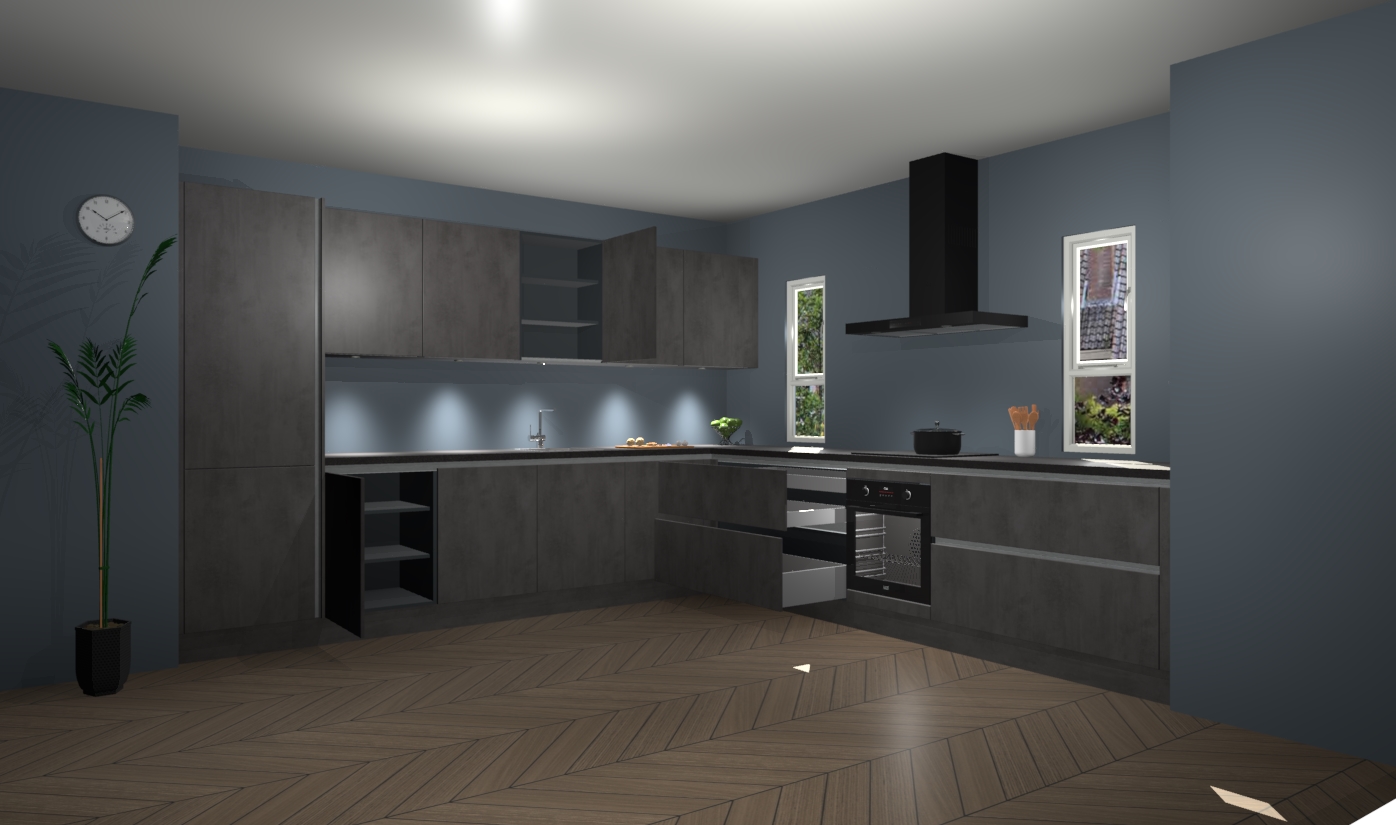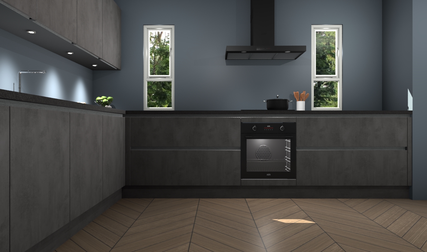 De beton antraciet greeploze keuken is een ideale hoekkeuken en heeft alle functies en apparatuur die u maar nodig kunt hebben. Bij de bestelling krijgt u een oven, inductiekookplaat, afzuigkap, vaatwasser en koelkast - deze kunnen desgewenst eenvoudig worden uitgebreid naar AEG na bestellen. Elke kast wordt ook voor gemonteerd geleverd met soft close deuren die jarenlang gebruik beloven. Stelt u zich voor dat u geen gedoe heeft met vervelende montage - vanaf het moment dat u uw bestelling plaats, duurt het slechts 7 weken voor het bij u thuis geleverd wordt.