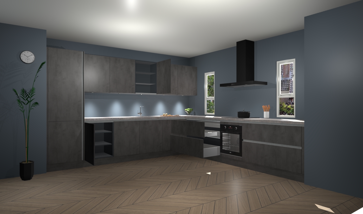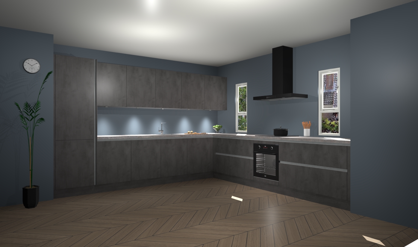 De beton antraciet greeploze keuken is een ideale hoekkeuken en heeft alle functies en apparatuur die u maar nodig kunt hebben. Bij de bestelling krijgt u een oven, inductiekookplaat, afzuigkap, vaatwasser en koelkast - deze kunnen desgewenst eenvoudig worden uitgebreid naar AEG na bestellen. Elke kast wordt ook voor gemonteerd geleverd met soft close deuren die jarenlang gebruik beloven. Stelt u zich voor dat u geen gedoe heeft met vervelende montage - vanaf het moment dat u uw bestelling plaats, duurt het slechts 7 weken voor het bij u thuis geleverd wordt.