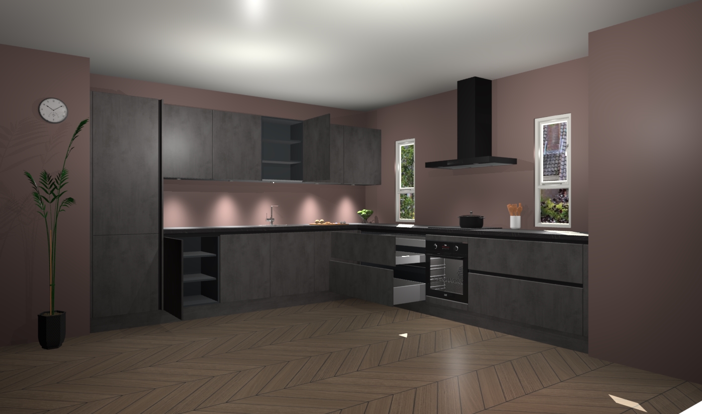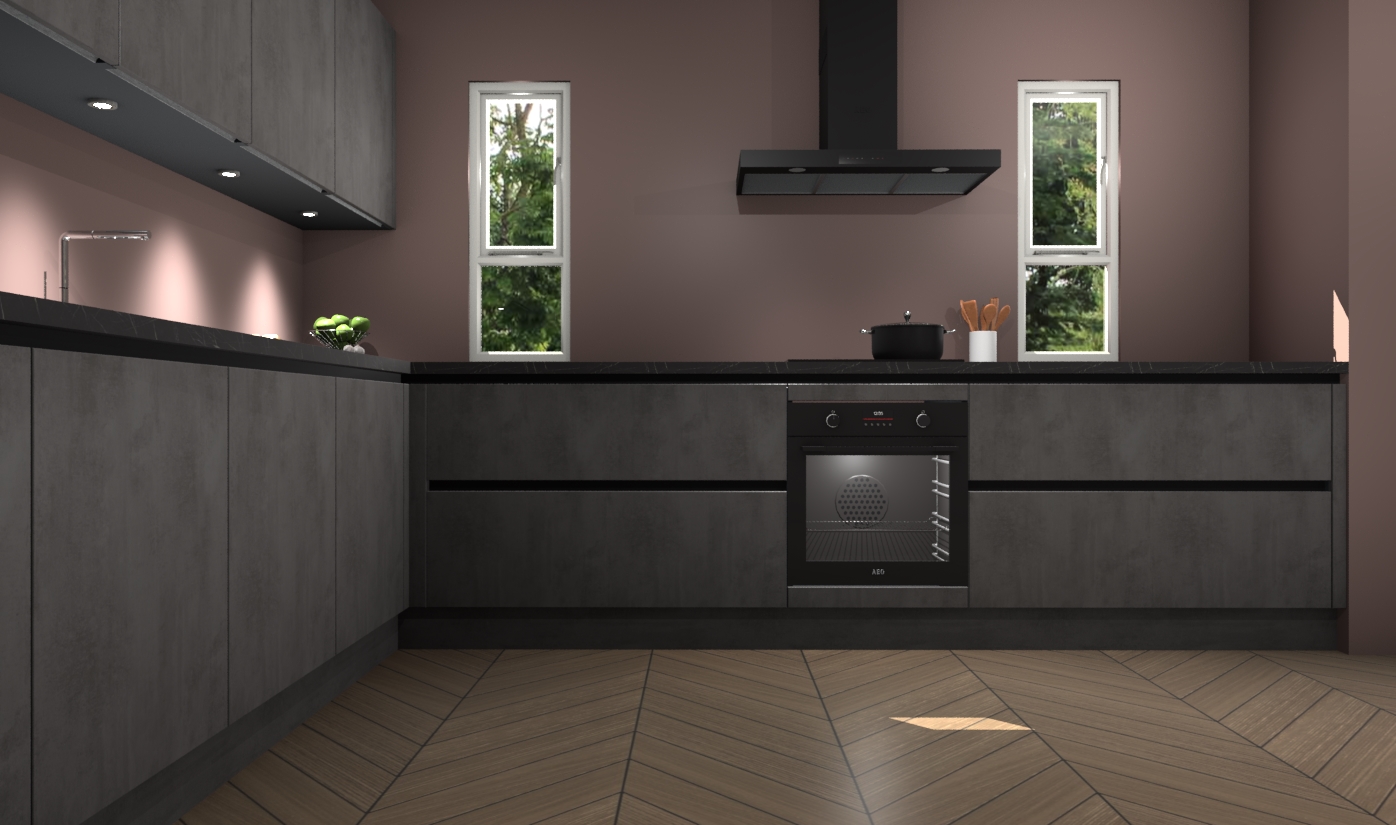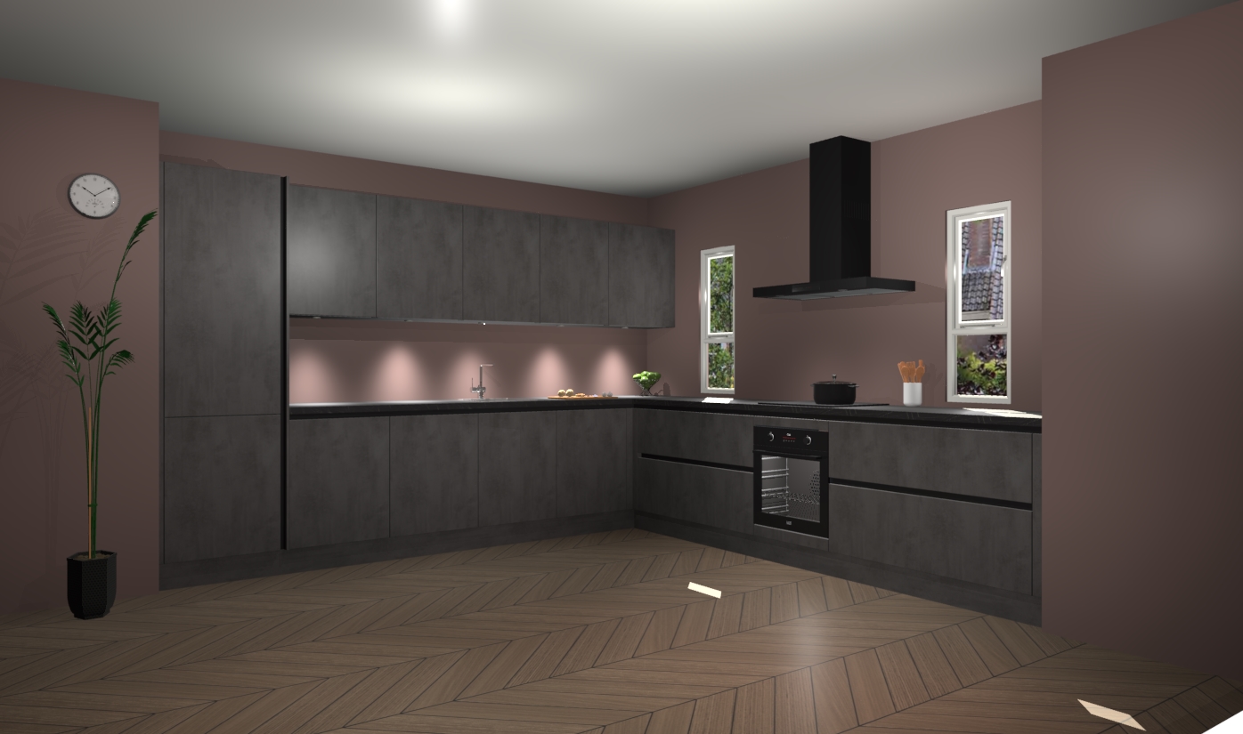 De beton antraciet greeploze keuken is een ideale hoekkeuken en heeft alle functies en apparatuur die u maar nodig kunt hebben. Bij de bestelling krijgt u een oven, inductiekookplaat, afzuigkap, vaatwasser en koelkast - deze kunnen desgewenst eenvoudig worden uitgebreid naar AEG na bestellen. Elke kast wordt ook voor gemonteerd geleverd met soft close deuren die jarenlang gebruik beloven. Stelt u zich voor dat u geen gedoe heeft met vervelende montage - vanaf het moment dat u uw bestelling plaats, duurt het slechts 7 weken voor het bij u thuis geleverd wordt.