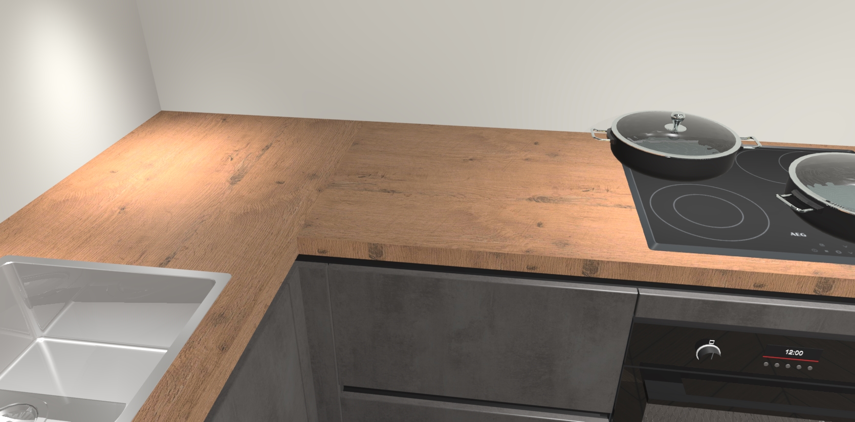 - Bij een hoekwerkblad zijn de hoeken in gevreesd en op maat gemaakt