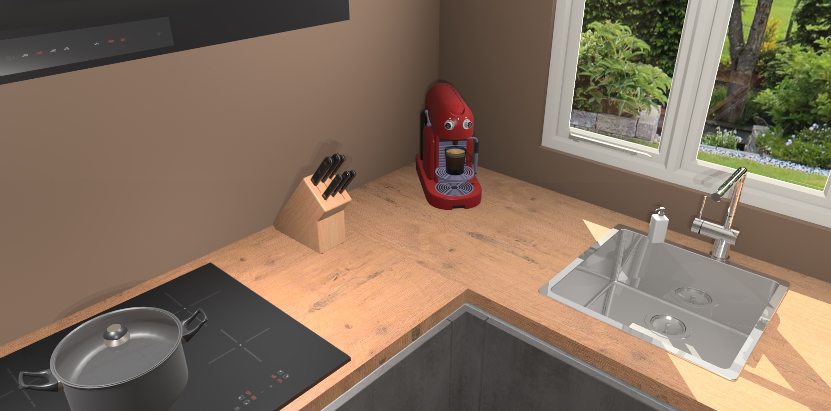 - Bij een hoekwerkblad zijn de hoeken in gevreesd en op maat gemaakt