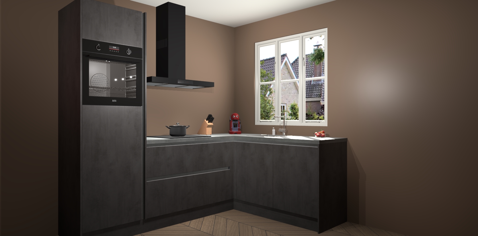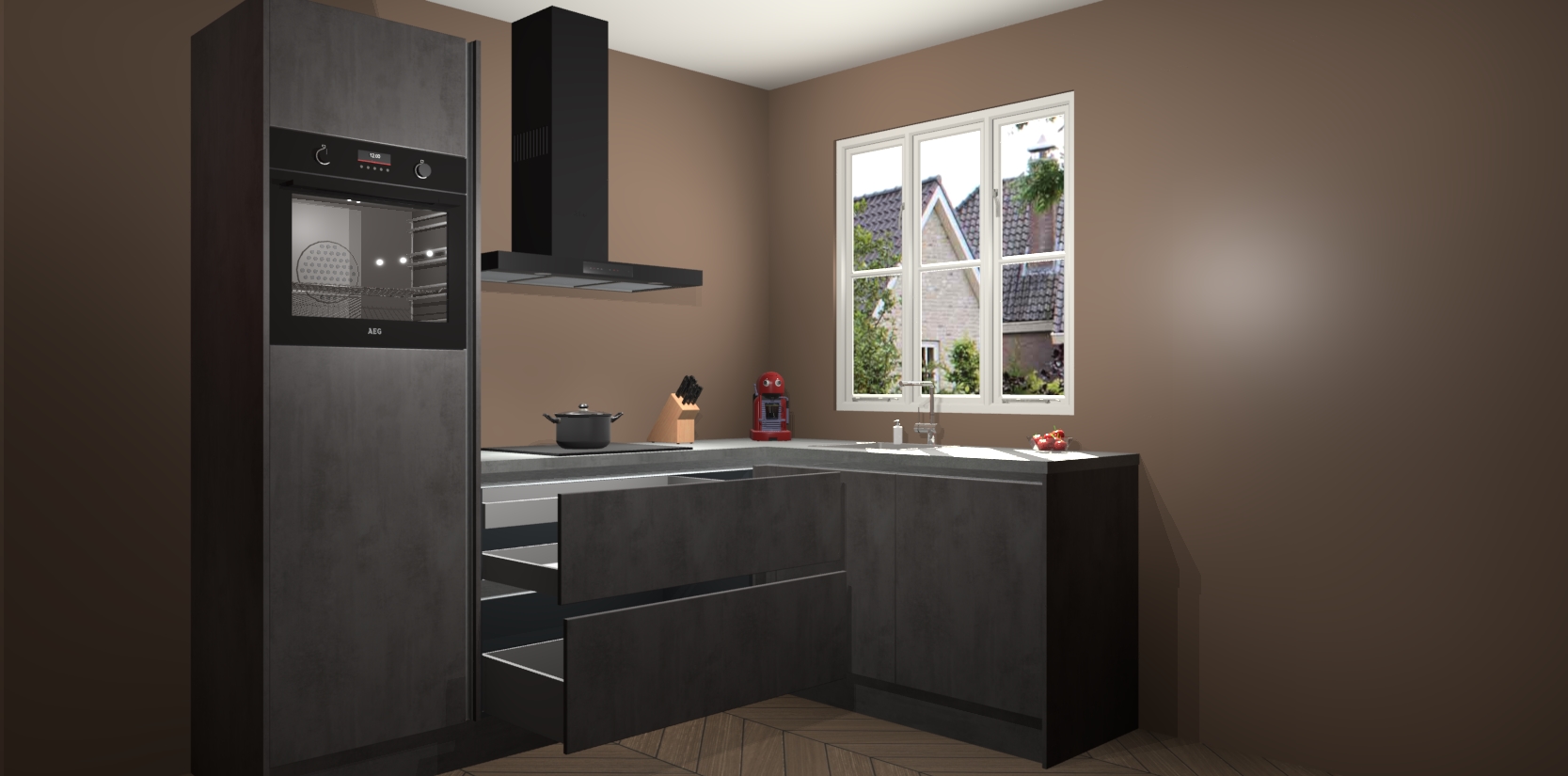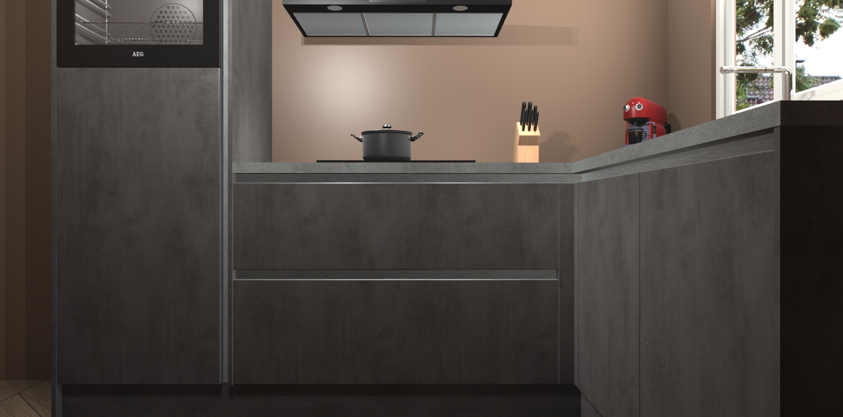 Dit model biedt u voldoende opbergruimte en vijf ingebouwde apparaten: een oven, inductiekookplaat, afzuigkap, vaatwasser en koelkast. Deze apparaten kunnen gemakkelijk worden geüpgrade naar AEG nadat u besteld heeft. De verschillende laden en kastjes bevatten softclose-deuren waardoor ze gezellig dichtvallen met een geruststellend helemaal geruisloos geluid. En dat is nog niet alles! We garanderen ook dat de prijs altijd laag blijft - dus haal nu uw Beton Antraciet greeploze keuken Victoria terwijl het kan.