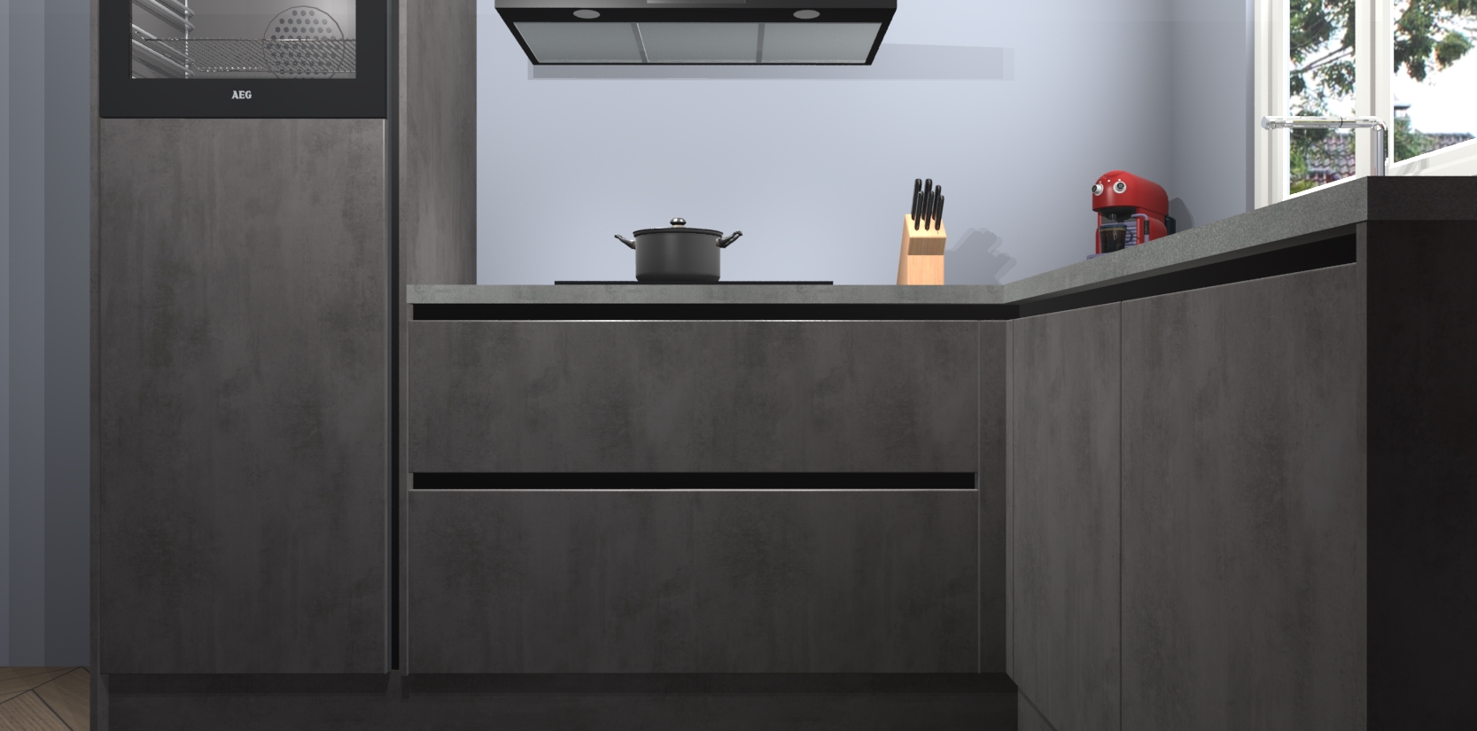 Bestellen was nog nooit zo makkelijk en we leveren met slechts 7 weken; zodra de keuken arriveert staan de kasten voor gemonteerd klaar om er alles aan te doen dat u hem gemakkelijk zelf kunt installeren! Eén ding is zeker: met de Beton Antraciet greeploze keuken Victoria slaagt u erin modischer, modernere keukens uit te rusten die tientallen jaren meegaan! Haal snel uw Beton Antraciet greeploze keuken Victoria - of u nu net begint of al 'levenservaring' hebt in de keukendroomloopbaan - want dit topmodel van onze collectie wilt u absoluut niet missen.