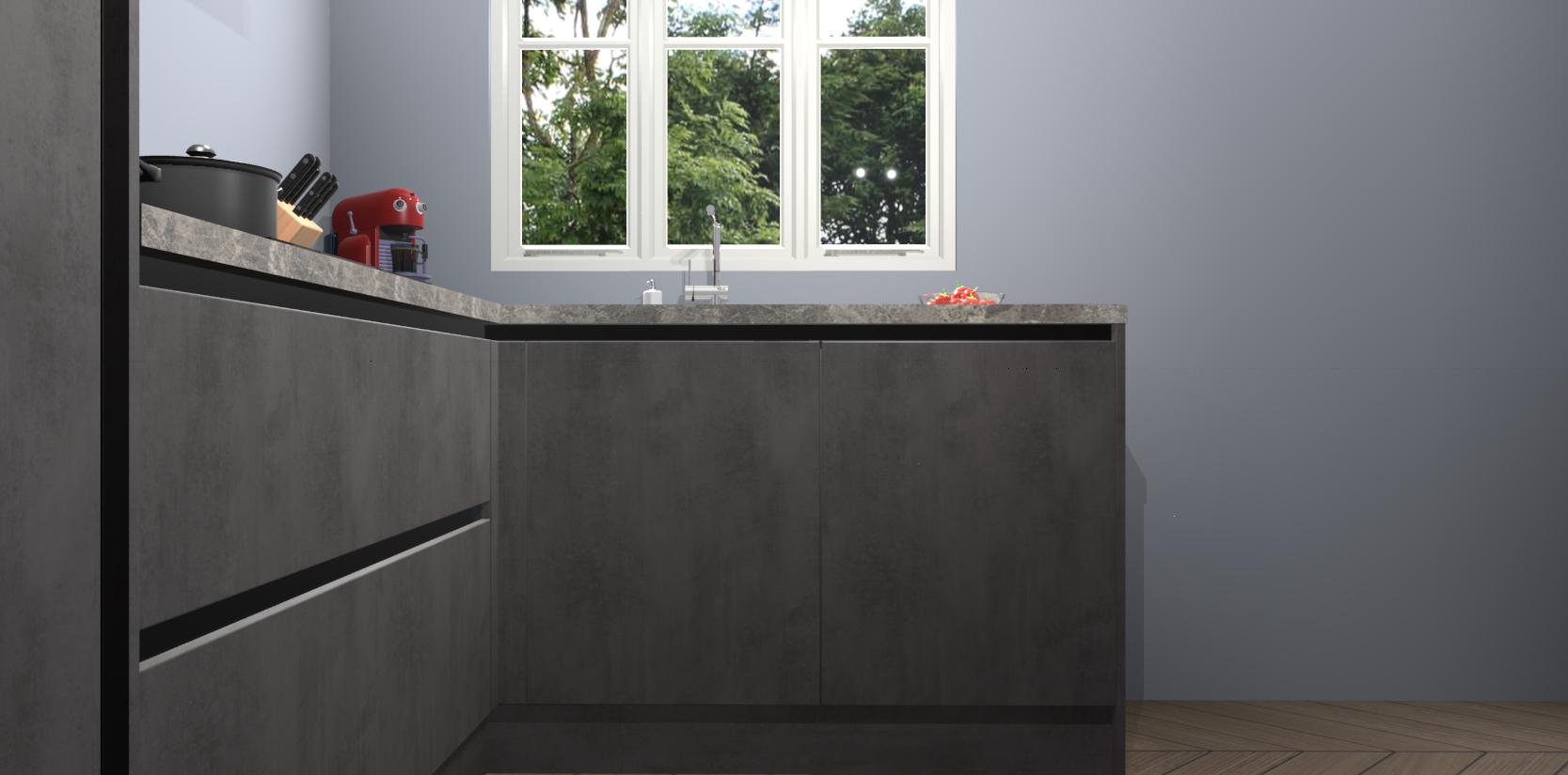 Bestellen was nog nooit zo makkelijk en we leveren met slechts 7 weken; zodra de keuken arriveert staan de kasten voor gemonteerd klaar om er alles aan te doen dat u hem gemakkelijk zelf kunt installeren! Eén ding is zeker: met de Beton Antraciet greeploze keuken Victoria slaagt u erin modischer, modernere keukens uit te rusten die tientallen jaren meegaan! Haal snel uw Beton Antraciet greeploze keuken Victoria - of u nu net begint of al 'levenservaring' hebt in de keukendroomloopbaan - want dit topmodel van onze collectie wilt u absoluut niet missen.