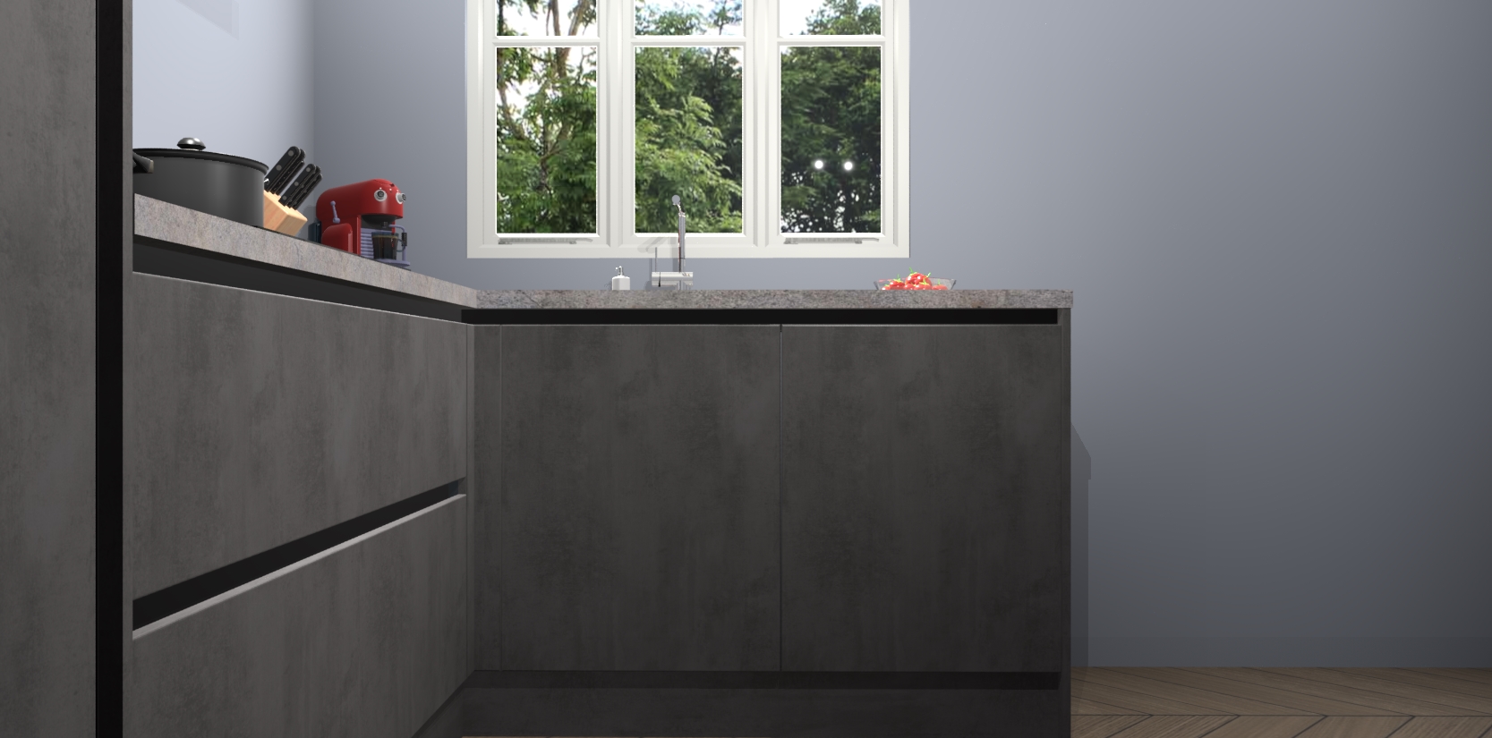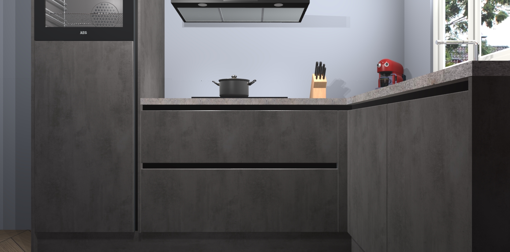 Bestellen was nog nooit zo makkelijk en we leveren met slechts 7 weken; zodra de keuken arriveert staan de kasten voor gemonteerd klaar om er alles aan te doen dat u hem gemakkelijk zelf kunt installeren! Eén ding is zeker: met de Beton Antraciet greeploze keuken Victoria slaagt u erin modischer, modernere keukens uit te rusten die tientallen jaren meegaan! Haal snel uw Beton Antraciet greeploze keuken Victoria - of u nu net begint of al 'levenservaring' hebt in de keukendroomloopbaan - want dit topmodel van onze collectie wilt u absoluut niet missen.
