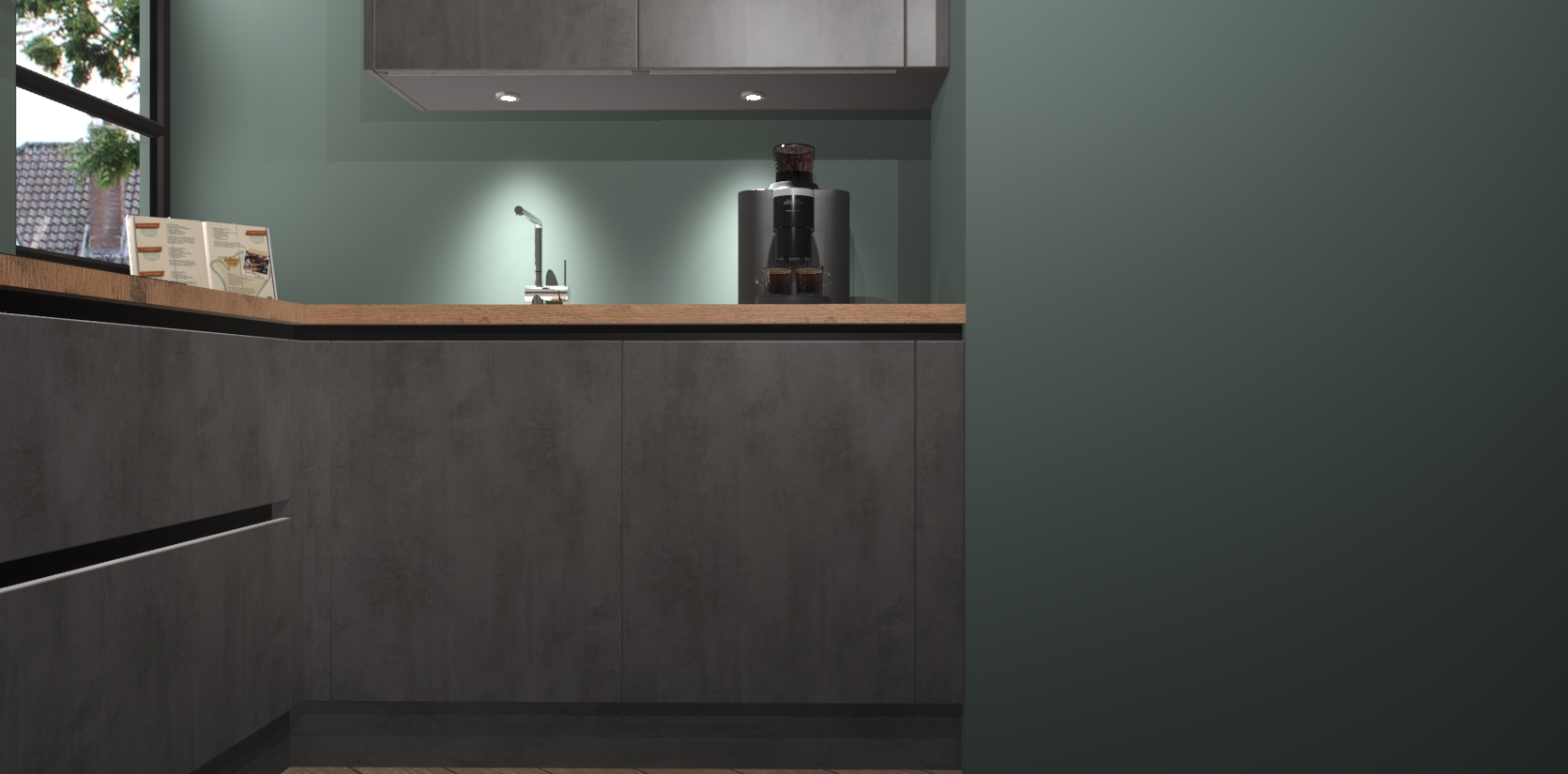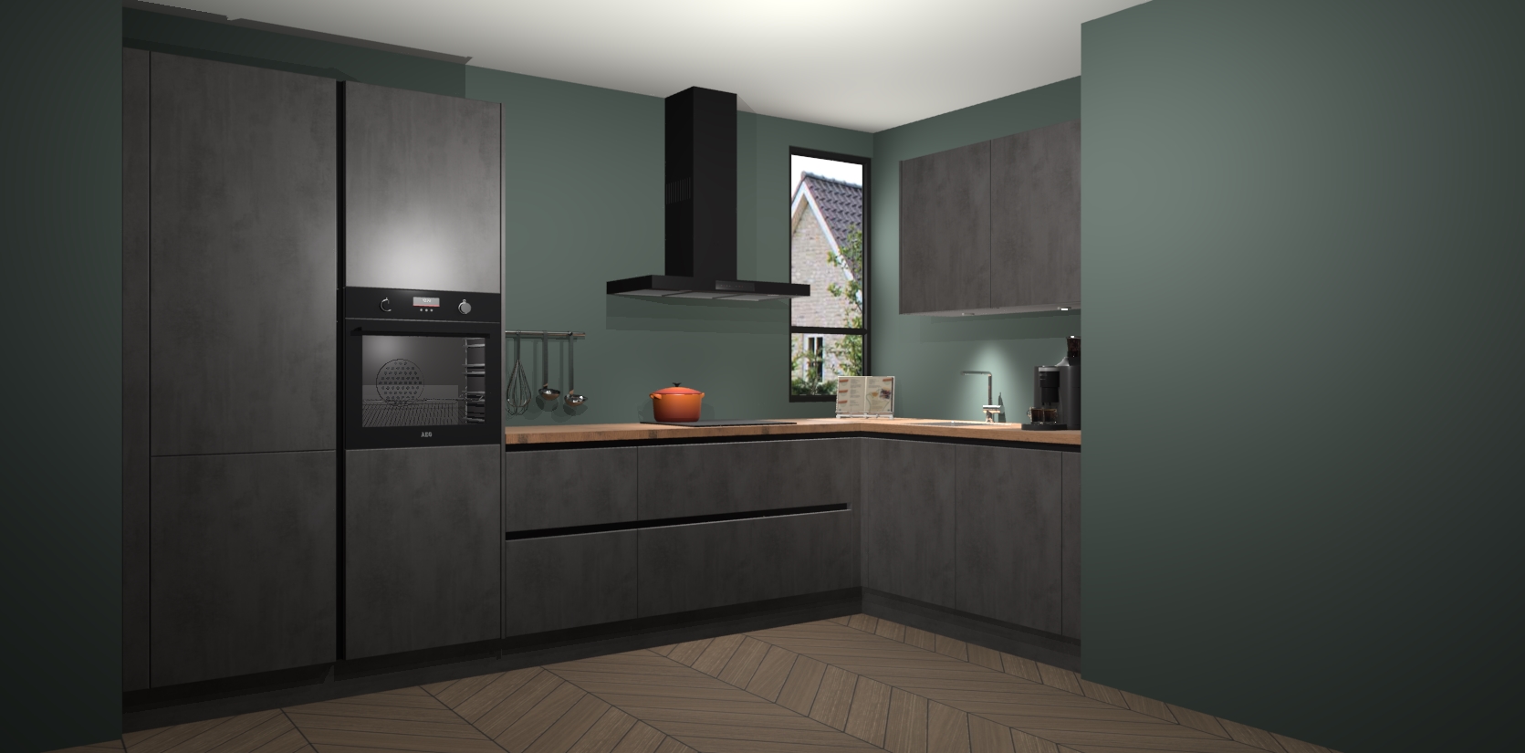 Welkom in uw nieuwe moderne keuken! Laat ons u voorstellen aan de Beton Antraciet greeploze keuken Vlaanderen.Deze prachtige hoekkeuken straalt exclusiviteit en luxe uit als geen ander. Het strakke design, de tijdloze kleuren en het greeploze model maken van deze keuken een moderne klassieker. En met voldoende opbergruimte heeft deze keuken echt voor ieder wat wils.