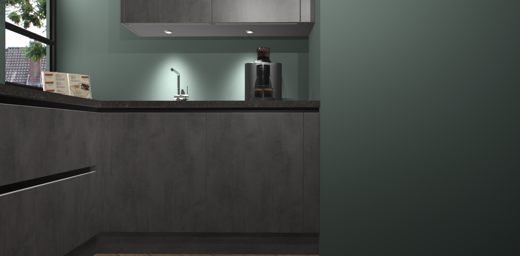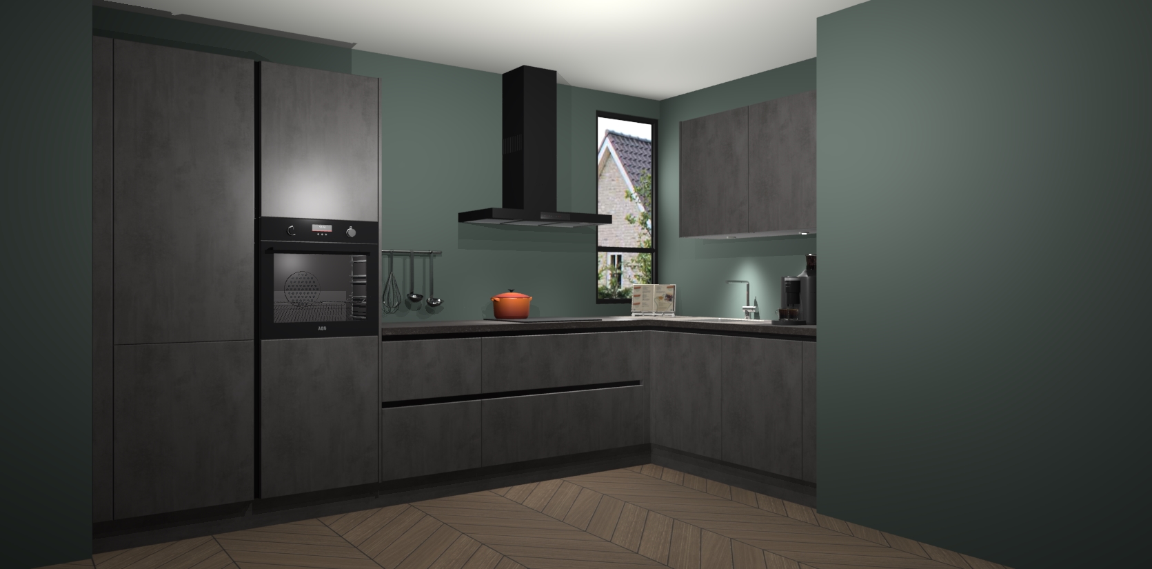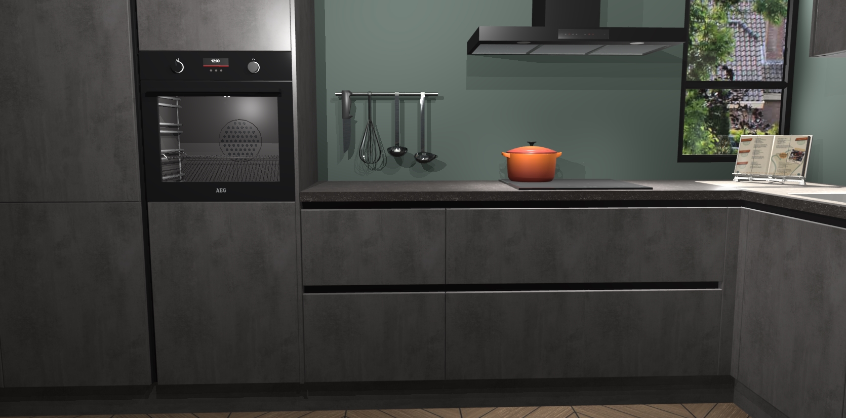 Welkom in uw nieuwe moderne keuken! Laat ons u voorstellen aan de Beton Antraciet greeploze keuken Vlaanderen.Deze prachtige hoekkeuken straalt exclusiviteit en luxe uit als geen ander. Het strakke design, de tijdloze kleuren en het greeploze model maken van deze keuken een moderne klassieker. En met voldoende opbergruimte heeft deze keuken echt voor ieder wat wils.