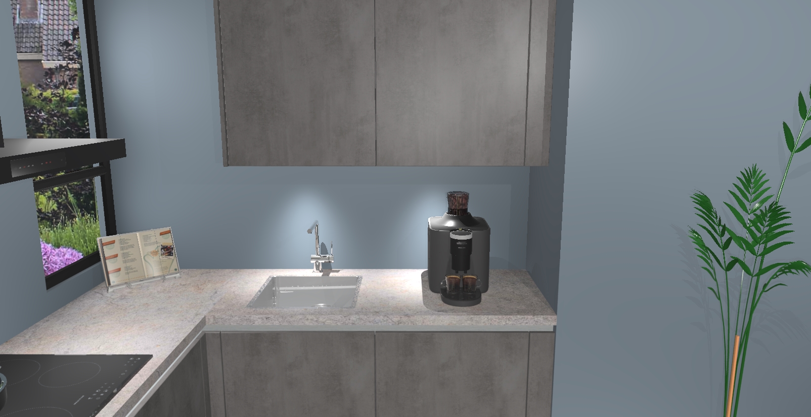 - De spoelbak is nog niet in gevreesd. Dit dient tijdens het werk gedaan te worden