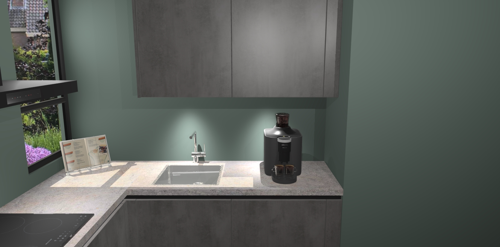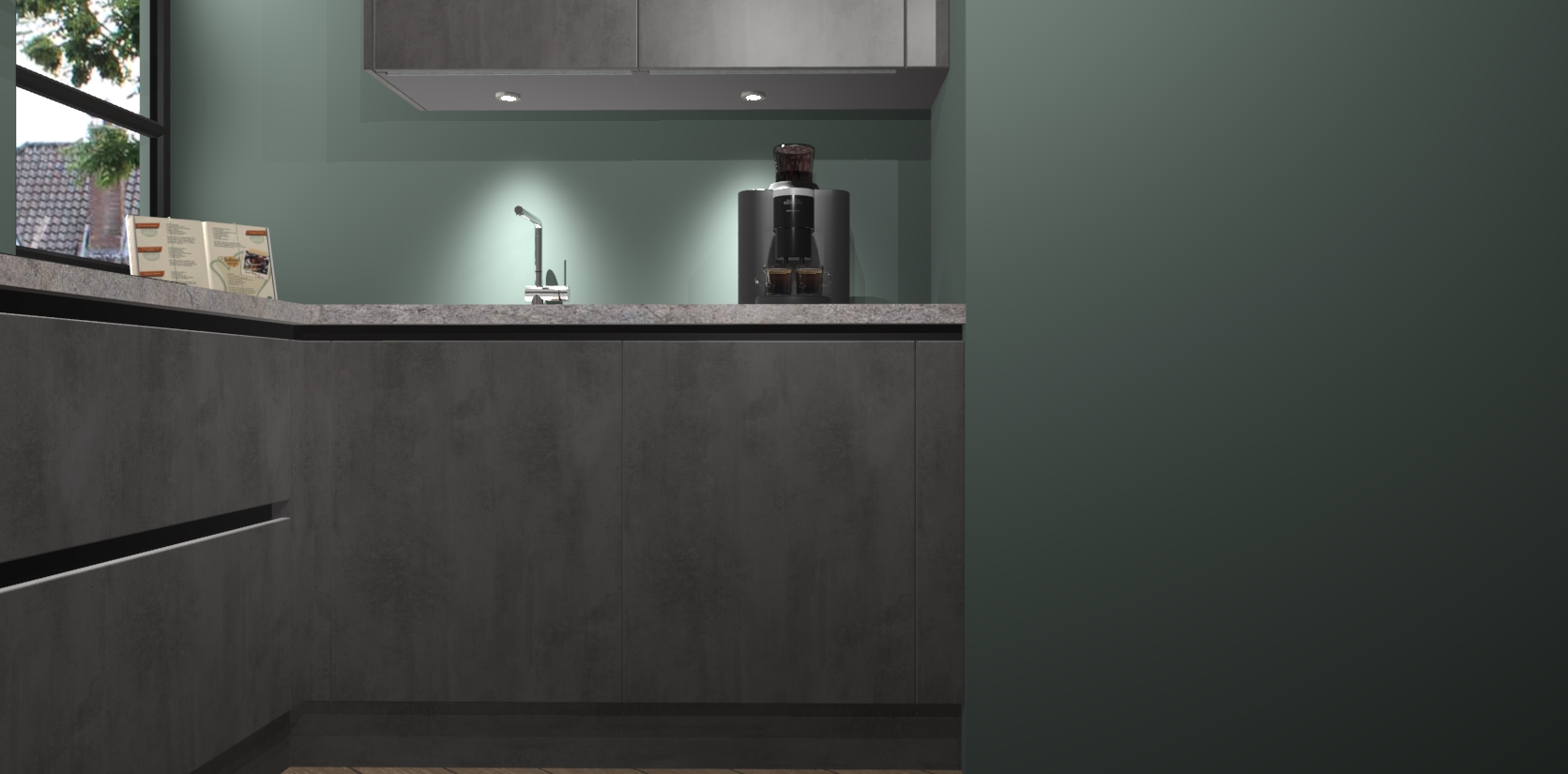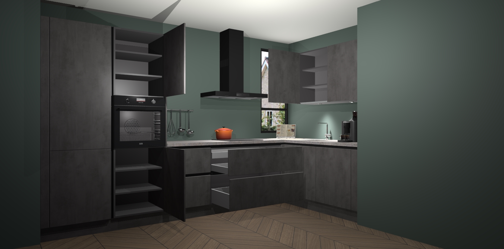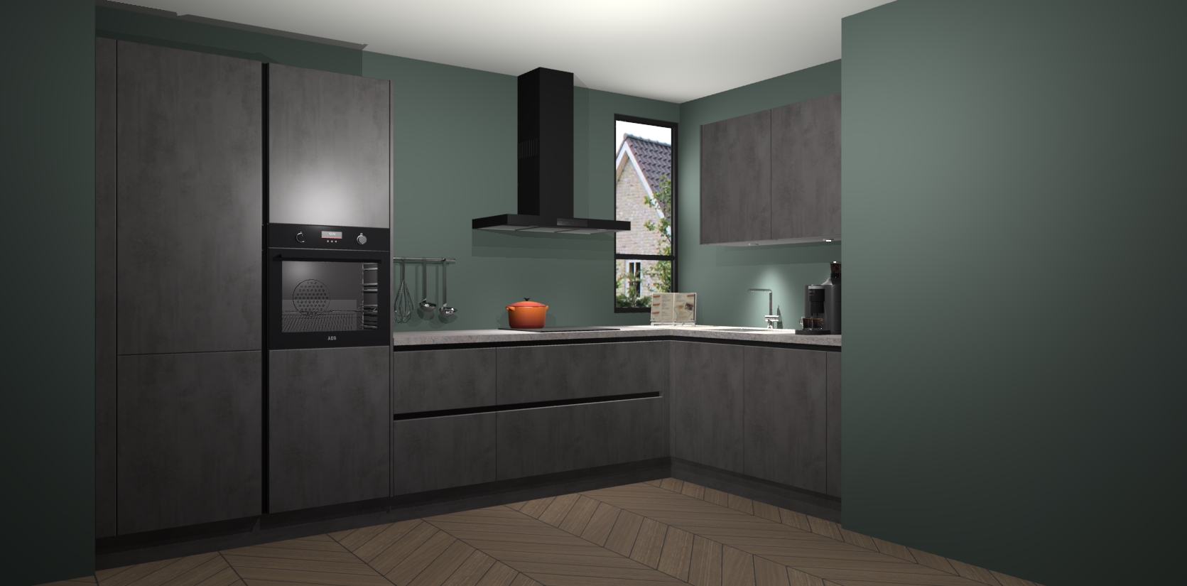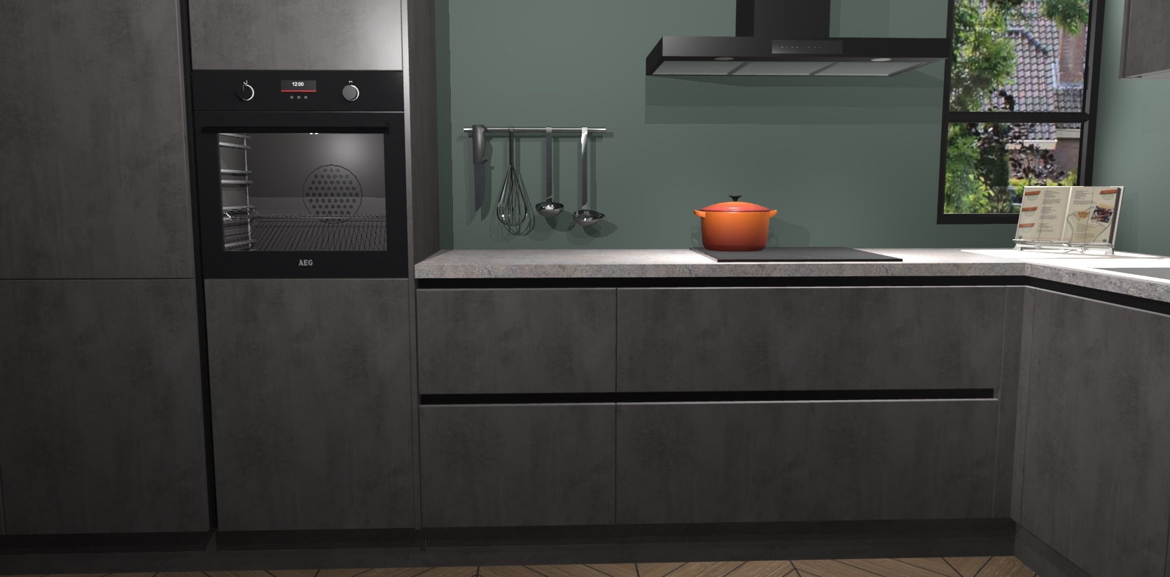 Welkom in uw nieuwe moderne keuken! Laat ons u voorstellen aan de Beton Antraciet greeploze keuken Vlaanderen.Deze prachtige hoekkeuken straalt exclusiviteit en luxe uit als geen ander. Het strakke design, de tijdloze kleuren en het greeploze model maken van deze keuken een moderne klassieker. En met voldoende opbergruimte heeft deze keuken echt voor ieder wat wils.