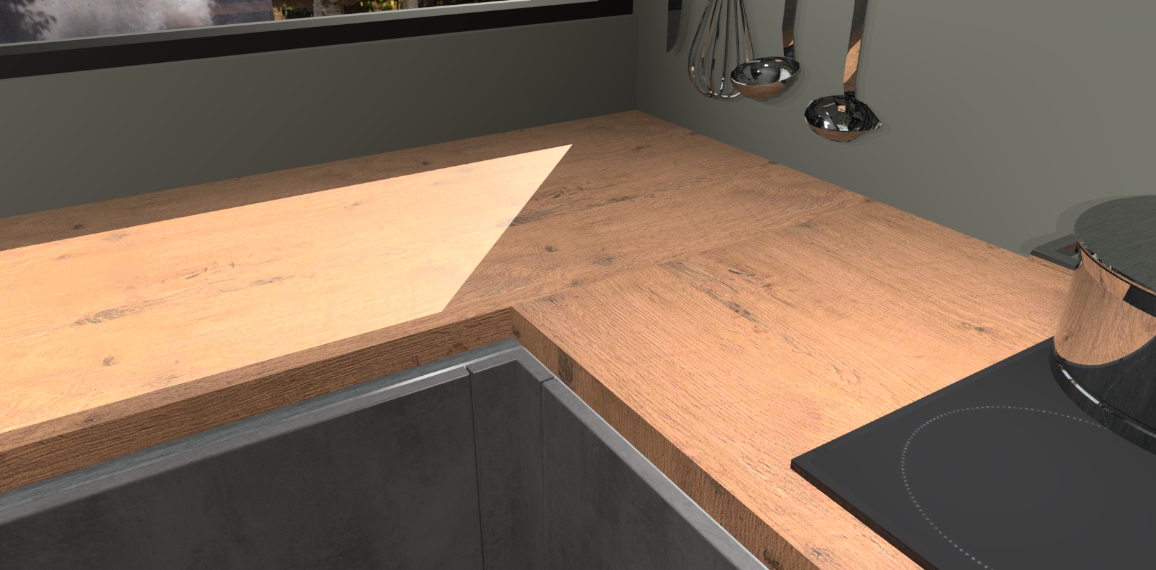 - Bij een hoekwerkblad zijn de hoeken in gevreesd en op maat gemaakt