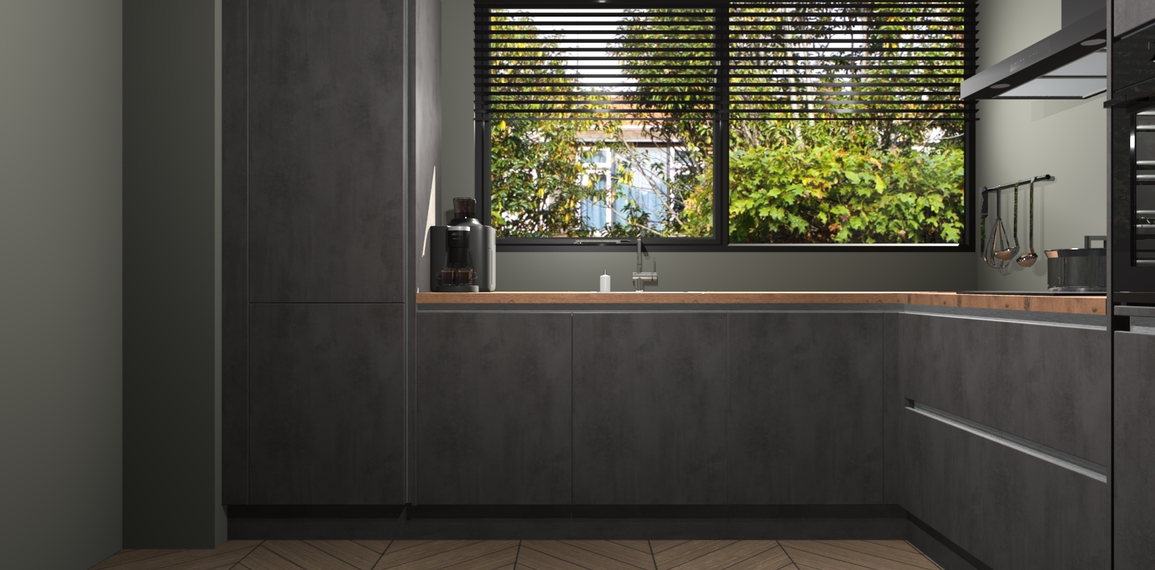 Wij presenteren de revolutie in keukens: de beton antraciet greeploze keuken Vogar. Met modern design, een tijdloos uiterlijk en kasten die al voor gemonteerd worden geleverd, laat deze stijlvolle keuken uw kookervaring op een hele nieuwe manier transformeren.