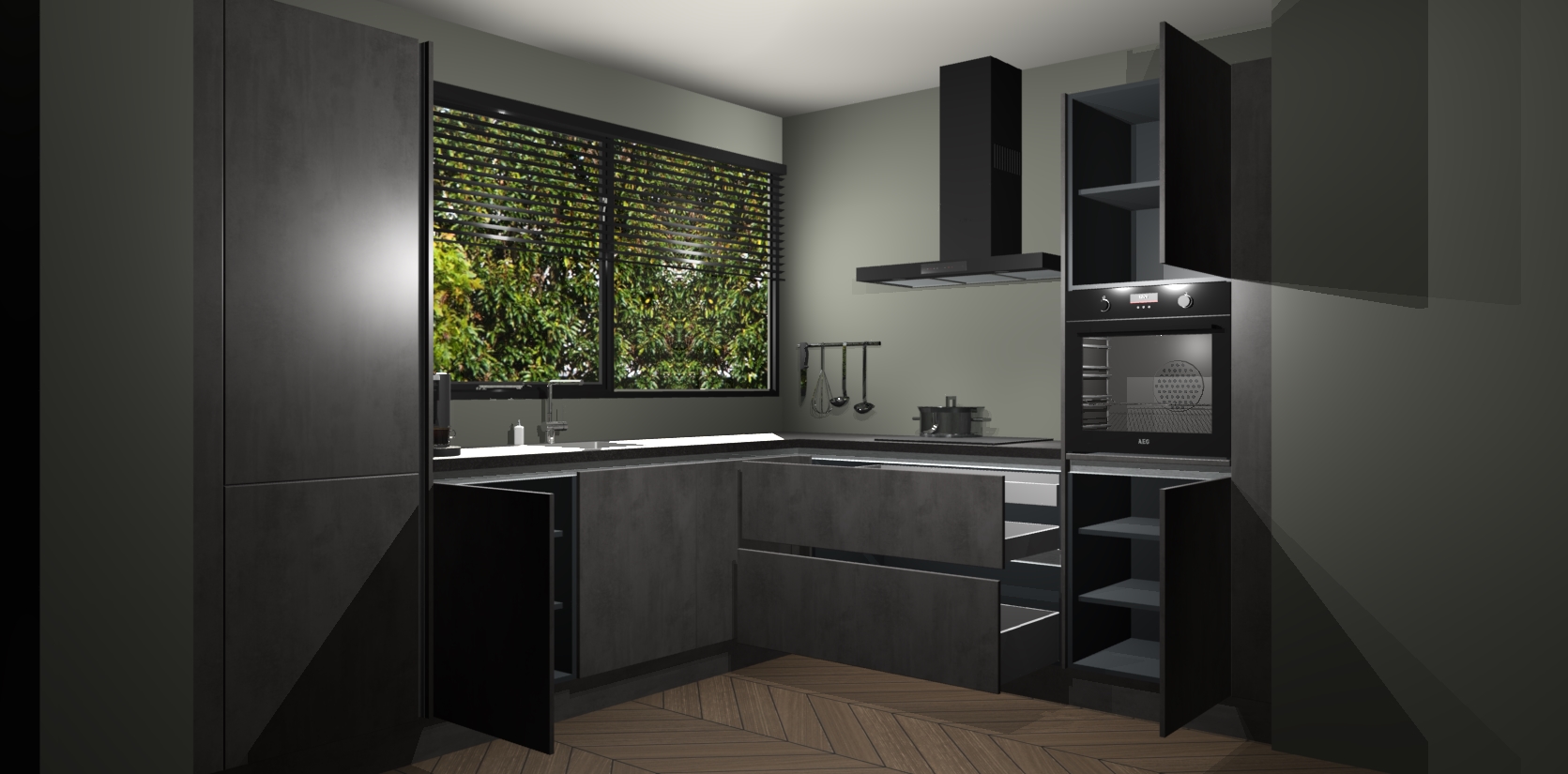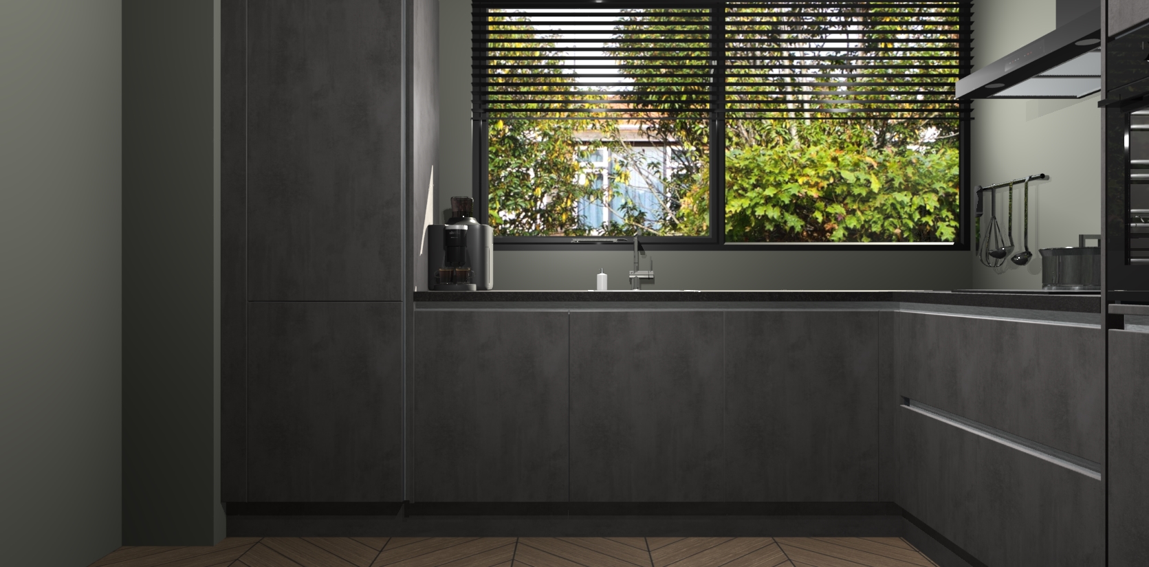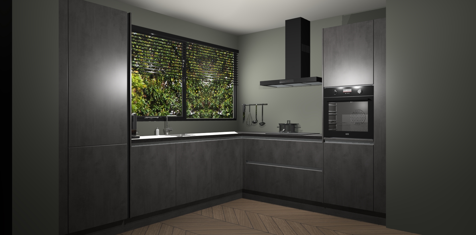 Wij presenteren de revolutie in keukens: de beton antraciet greeploze keuken Vogar. Met modern design, een tijdloos uiterlijk en kasten die al voor gemonteerd worden geleverd, laat deze stijlvolle keuken uw kookervaring op een hele nieuwe manier transformeren.