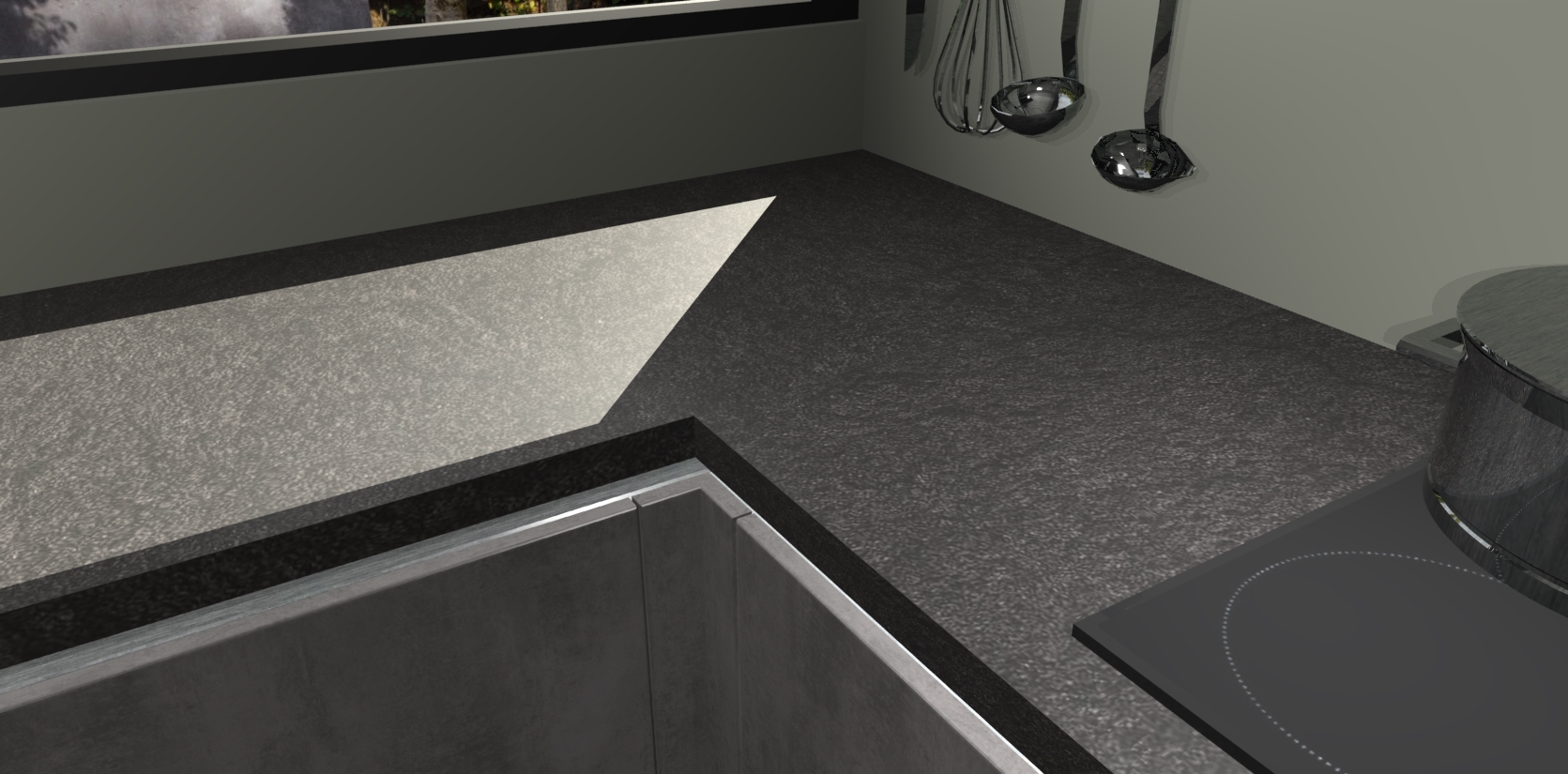 - Bij een hoekwerkblad zijn de hoeken in gevreesd en op maat gemaakt
