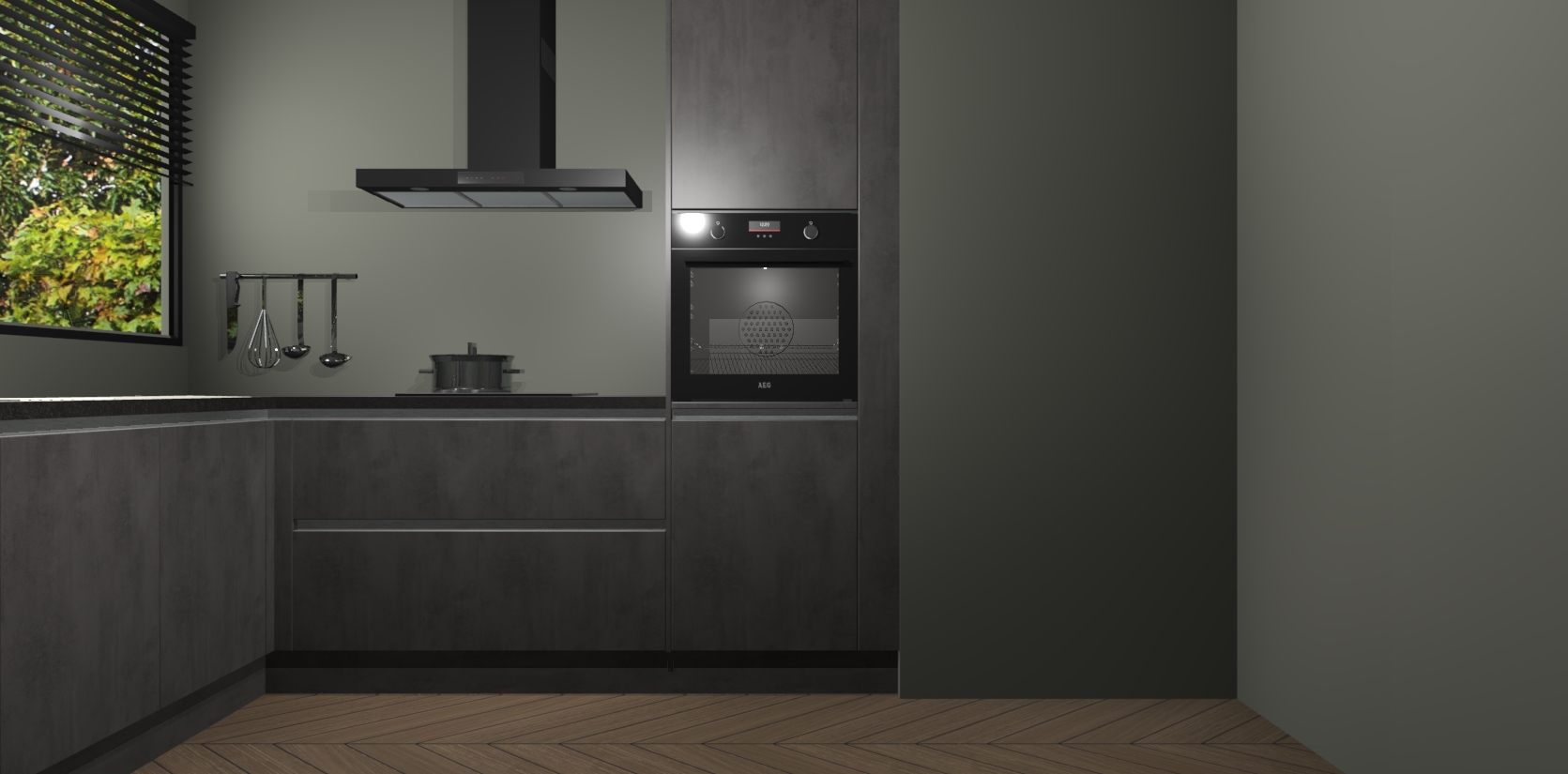 Met een modern, tijdloos design en ruime opslagruimte, zult u zich in no-time thuis voelen in uw nieuwe keuken. Uw leven wordt eenvoudiger met de soft-close deuren die voor het ultieme stille comfort zorgen - geen geluid dat u stoort terwijl u kookt. Ook is de keuken voorzien van 5 ingebouwde apparaten: een oven, inductie kookplaat, afzuigkap, vaatwasser en koelkast. Deze kunnen gemakkelijk na bestelling worden bijgewerkt naar AEG - waardoor uw luxe ervaring compleet is.