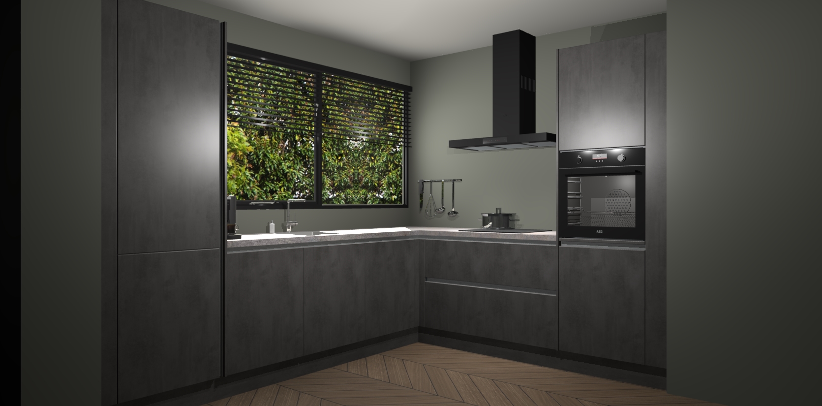 Wij presenteren de revolutie in keukens: de beton antraciet greeploze keuken Vogar. Met modern design, een tijdloos uiterlijk en kasten die al voor gemonteerd worden geleverd, laat deze stijlvolle keuken uw kookervaring op een hele nieuwe manier transformeren.