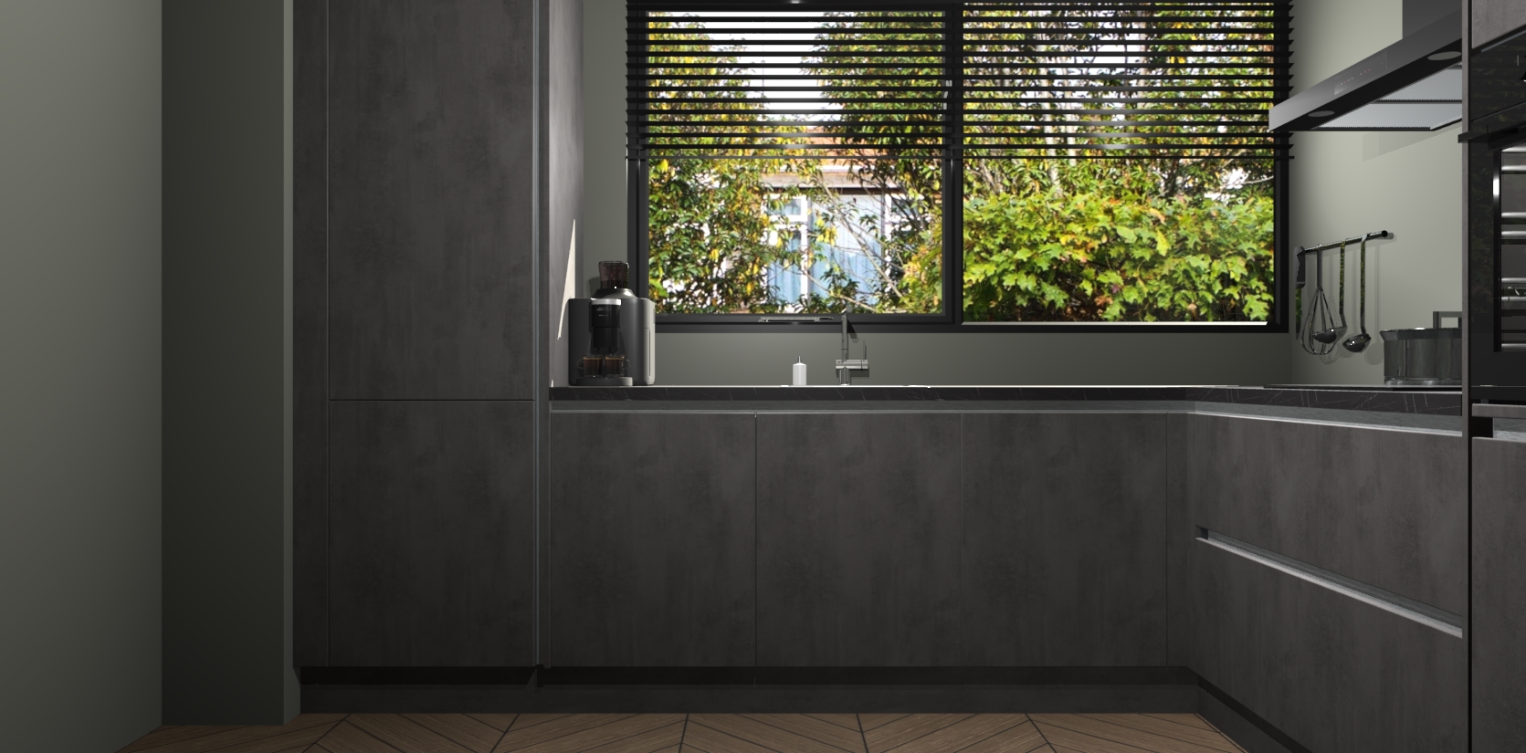 Wij presenteren de revolutie in keukens: de beton antraciet greeploze keuken Vogar. Met modern design, een tijdloos uiterlijk en kasten die al voor gemonteerd worden geleverd, laat deze stijlvolle keuken uw kookervaring op een hele nieuwe manier transformeren.