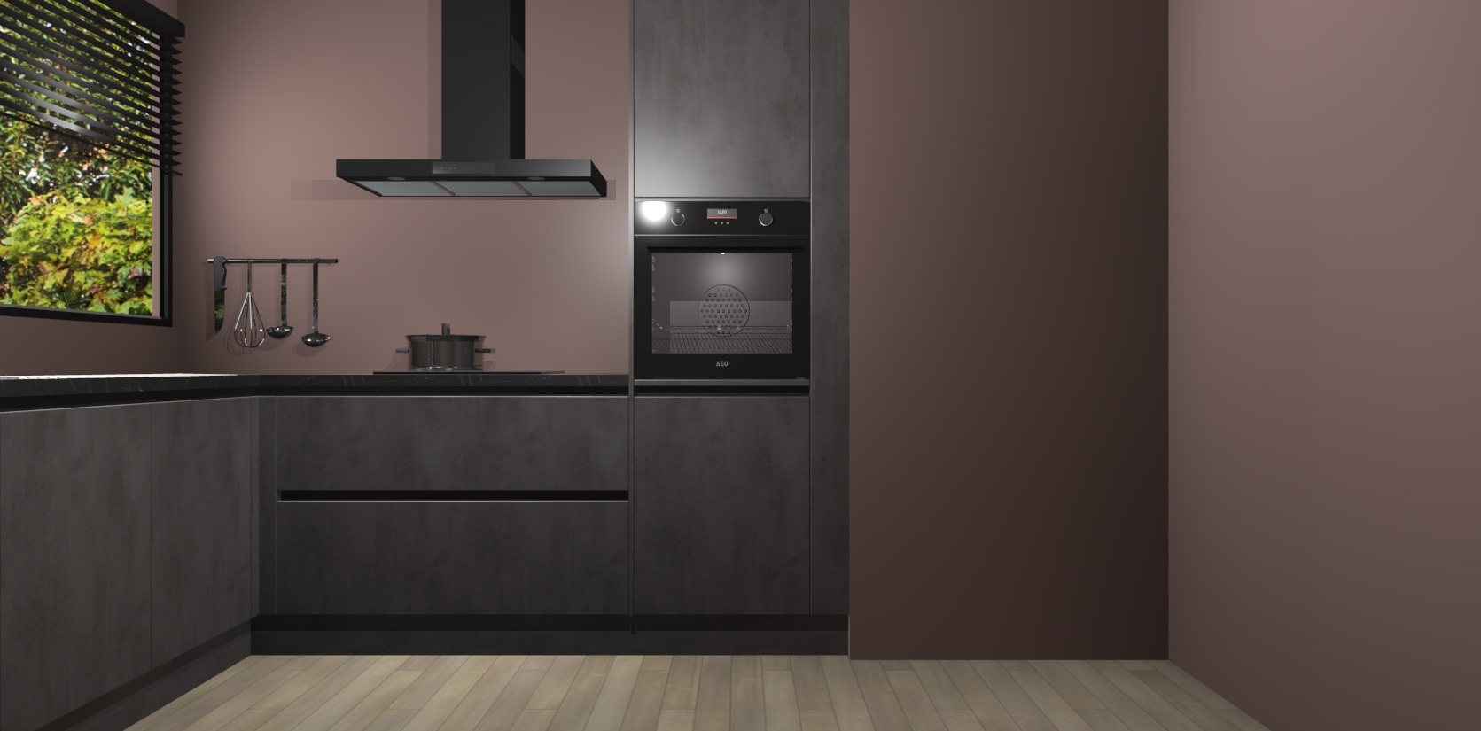 Met een modern, tijdloos design en ruime opslagruimte, zult u zich in no-time thuis voelen in uw nieuwe keuken. Uw leven wordt eenvoudiger met de soft-close deuren die voor het ultieme stille comfort zorgen - geen geluid dat u stoort terwijl u kookt. Ook is de keuken voorzien van 5 ingebouwde apparaten: een oven, inductie kookplaat, afzuigkap, vaatwasser en koelkast. Deze kunnen gemakkelijk na bestelling worden bijgewerkt naar AEG - waardoor uw luxe ervaring compleet is.