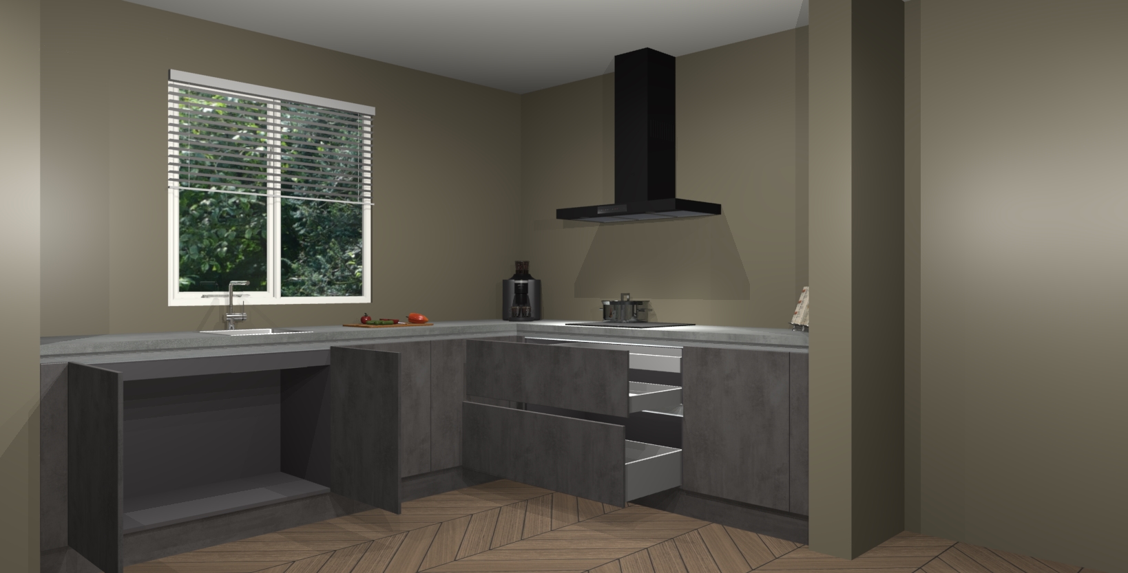 Wij presenteren de revolutie in keukens: de Beton antraciet keuken Moroni. Met modern design, een tijdloos uiterlijk en kasten die al voor gemonteerd worden geleverd, laat deze stijlvolle keuken uw kookervaring op een hele nieuwe manier transformeren.