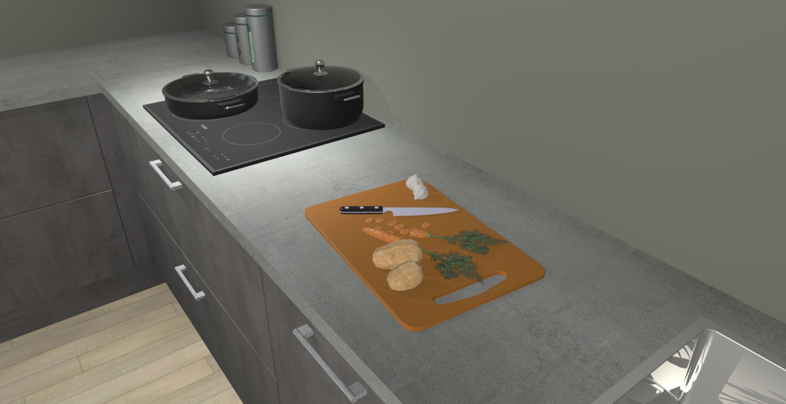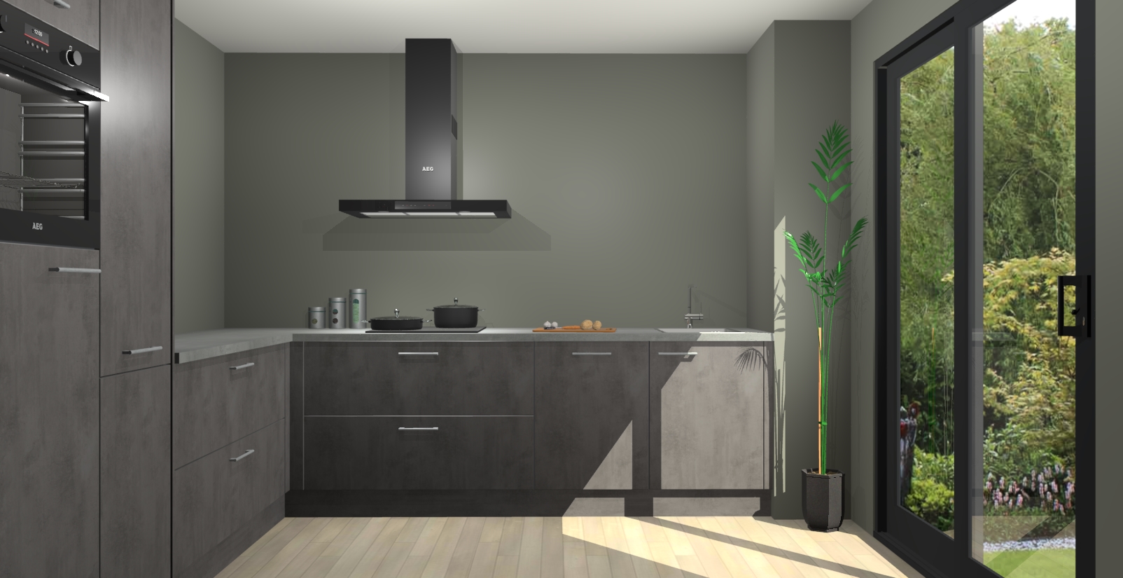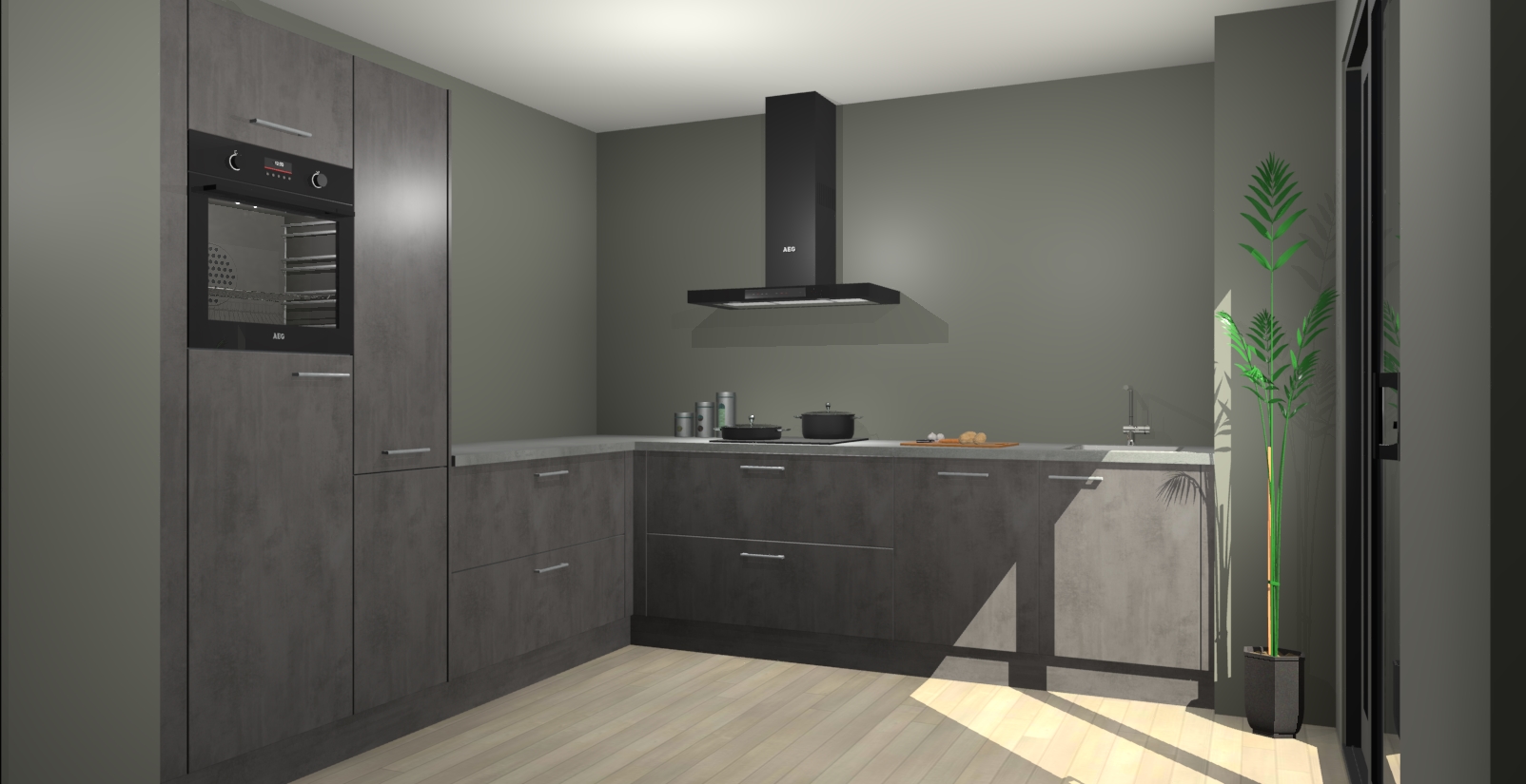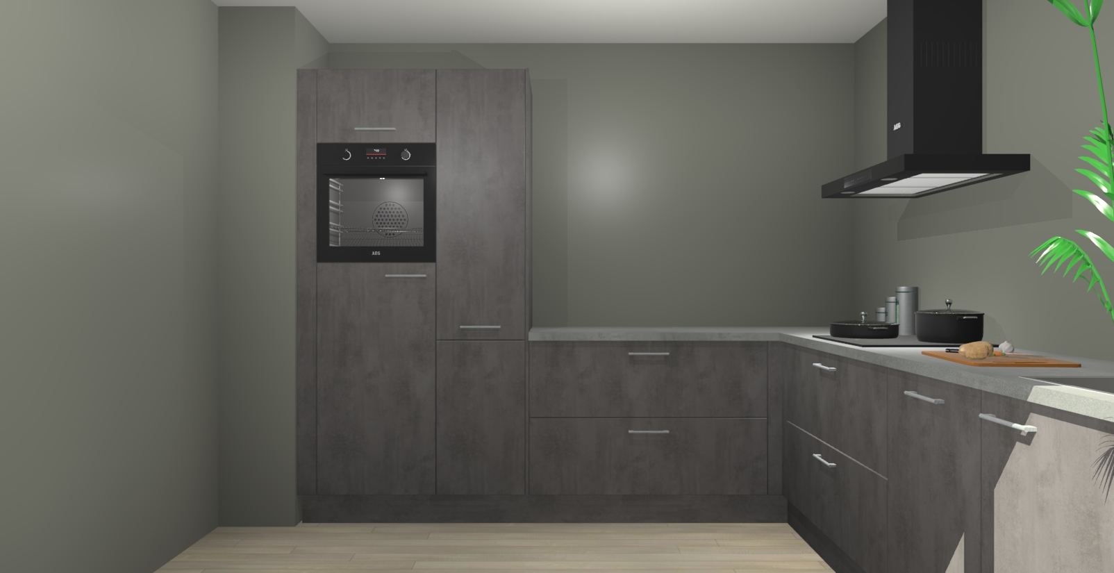 Laat u verrassen door de nieuwste en meest innovatieve keuken van dit moment: De Beton Antraciet keuken Antibes. Deze chique keuken straalt een stijlvolle sfeer uit die zeker bewondering zal oogsten bij uw gasten. Als u op zoek bent naar voldoende opbergruimte voor al uw keukengadgets en -gerei, dan is dit de perfecte oplossing. Met ingebouwde apparatuur zoals een oven, inductiekookplaat, afzuigkap, vaatwasser en koelkast! U krijgt niet alleen veel opbergruimte, maar ook een betrouwbaar soft close-deursysteem dat ervoor zorgt dat er nooit meer kastdeuren dichtslaan!