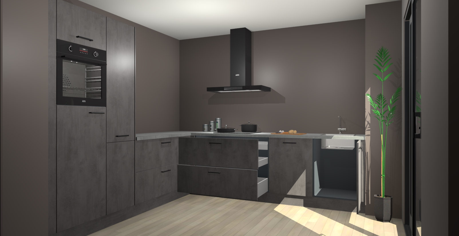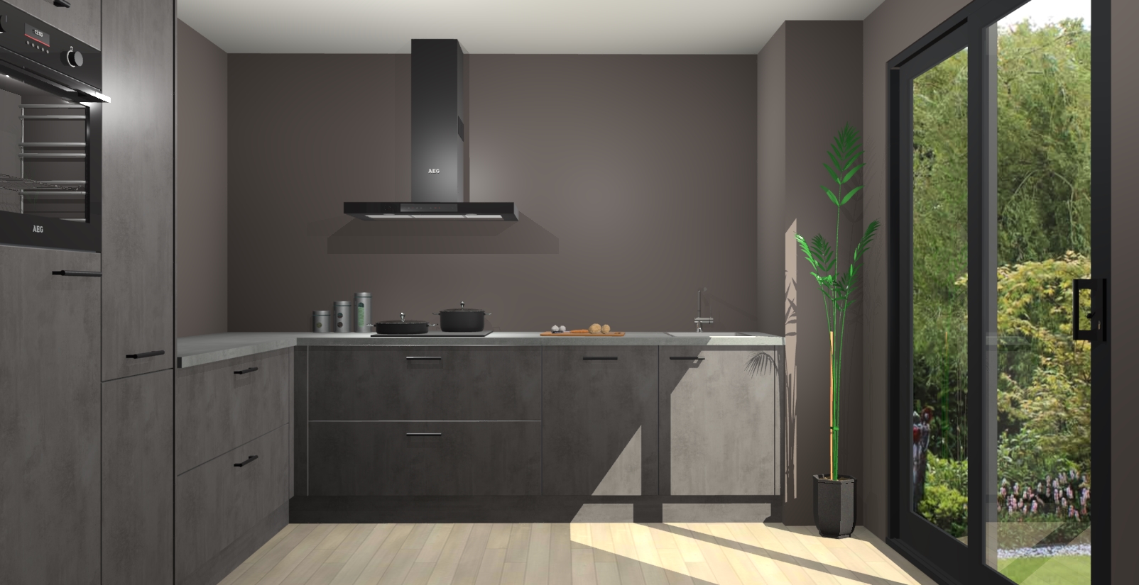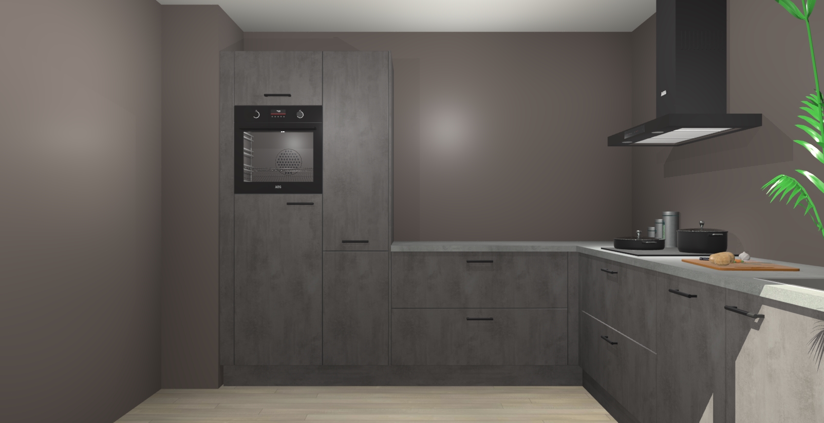 Laat u verrassen door de nieuwste en meest innovatieve keuken van dit moment: De Beton Antraciet keuken Antibes. Deze chique keuken straalt een stijlvolle sfeer uit die zeker bewondering zal oogsten bij uw gasten. Als u op zoek bent naar voldoende opbergruimte voor al uw keukengadgets en -gerei, dan is dit de perfecte oplossing. Met ingebouwde apparatuur zoals een oven, inductiekookplaat, afzuigkap, vaatwasser en koelkast! U krijgt niet alleen veel opbergruimte, maar ook een betrouwbaar soft close-deursysteem dat ervoor zorgt dat er nooit meer kastdeuren dichtslaan!