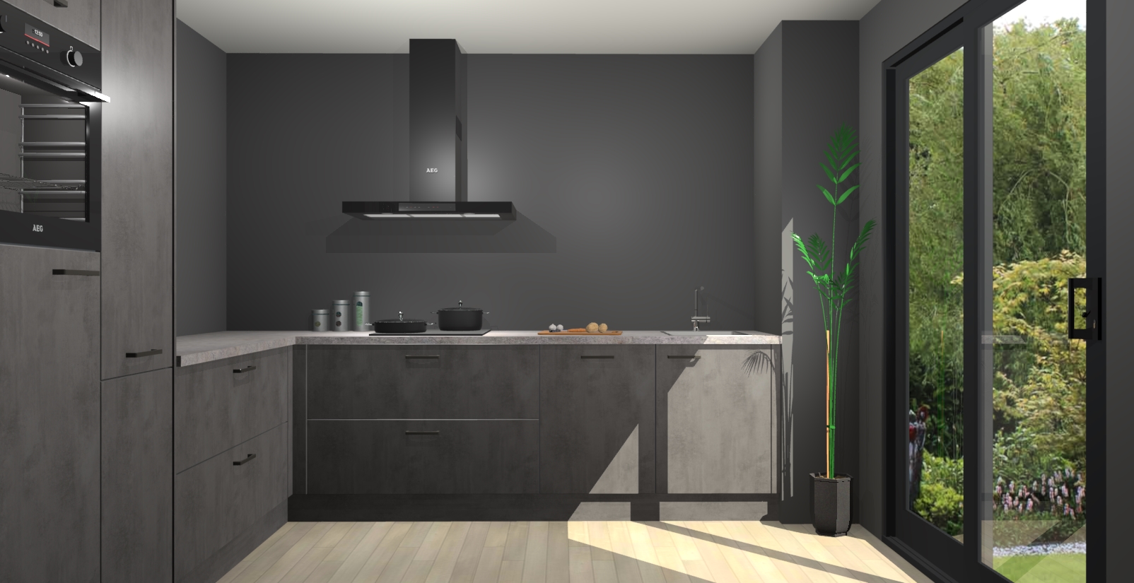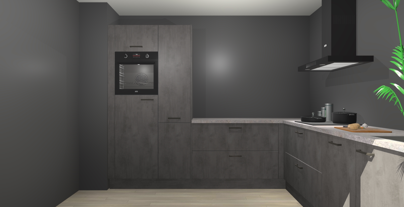 Laat u verrassen door de nieuwste en meest innovatieve keuken van dit moment: De Beton Antraciet keuken Antibes. Deze chique keuken straalt een stijlvolle sfeer uit die zeker bewondering zal oogsten bij uw gasten. Als u op zoek bent naar voldoende opbergruimte voor al uw keukengadgets en -gerei, dan is dit de perfecte oplossing. Met ingebouwde apparatuur zoals een oven, inductiekookplaat, afzuigkap, vaatwasser en koelkast! U krijgt niet alleen veel opbergruimte, maar ook een betrouwbaar soft close-deursysteem dat ervoor zorgt dat er nooit meer kastdeuren dichtslaan!