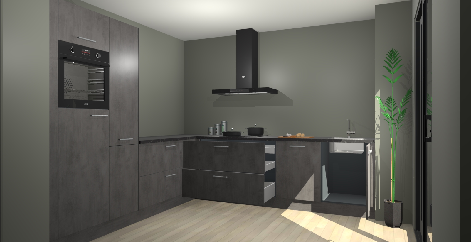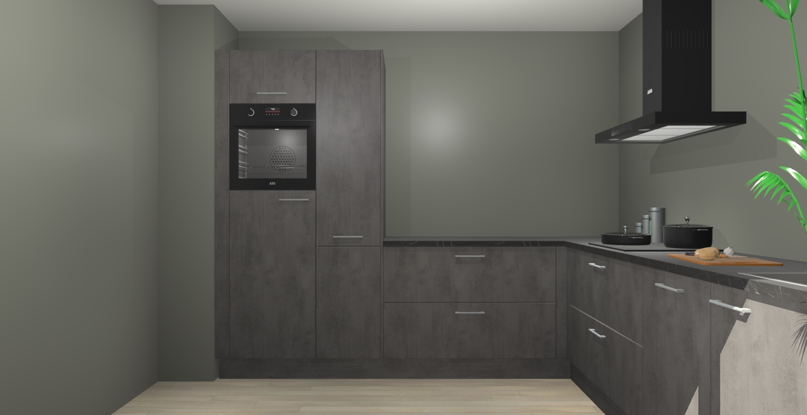 Laat u verrassen door de nieuwste en meest innovatieve keuken van dit moment: De Beton Antraciet keuken Antibes. Deze chique keuken straalt een stijlvolle sfeer uit die zeker bewondering zal oogsten bij uw gasten. Als u op zoek bent naar voldoende opbergruimte voor al uw keukengadgets en -gerei, dan is dit de perfecte oplossing. Met ingebouwde apparatuur zoals een oven, inductiekookplaat, afzuigkap, vaatwasser en koelkast! U krijgt niet alleen veel opbergruimte, maar ook een betrouwbaar soft close-deursysteem dat ervoor zorgt dat er nooit meer kastdeuren dichtslaan!
