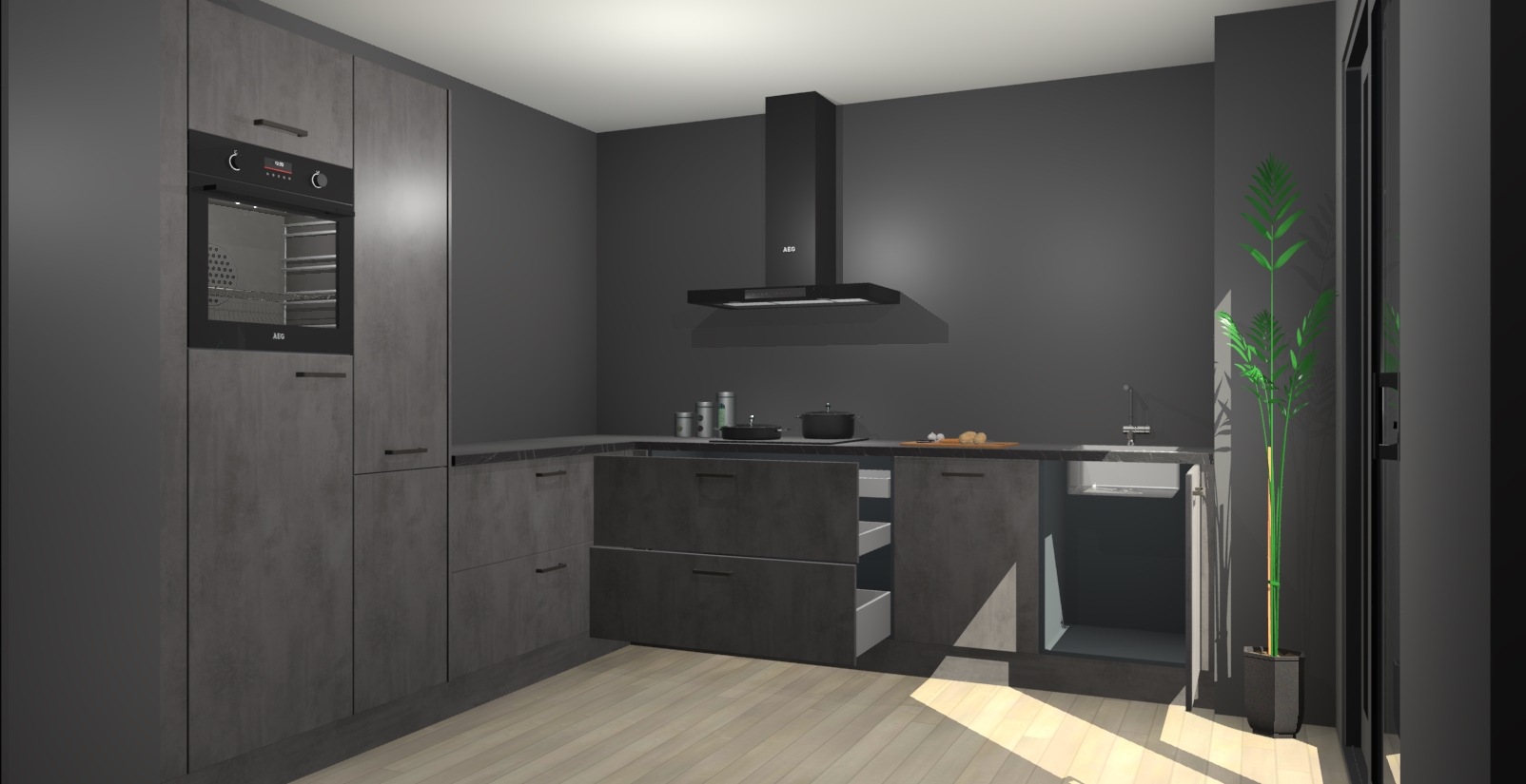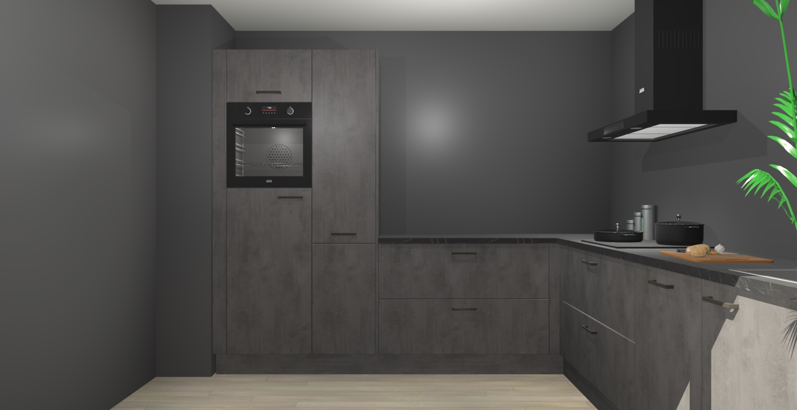 Laat u verrassen door de nieuwste en meest innovatieve keuken van dit moment: De Beton Antraciet keuken Antibes. Deze chique keuken straalt een stijlvolle sfeer uit die zeker bewondering zal oogsten bij uw gasten. Als u op zoek bent naar voldoende opbergruimte voor al uw keukengadgets en -gerei, dan is dit de perfecte oplossing. Met ingebouwde apparatuur zoals een oven, inductiekookplaat, afzuigkap, vaatwasser en koelkast! U krijgt niet alleen veel opbergruimte, maar ook een betrouwbaar soft close-deursysteem dat ervoor zorgt dat er nooit meer kastdeuren dichtslaan!