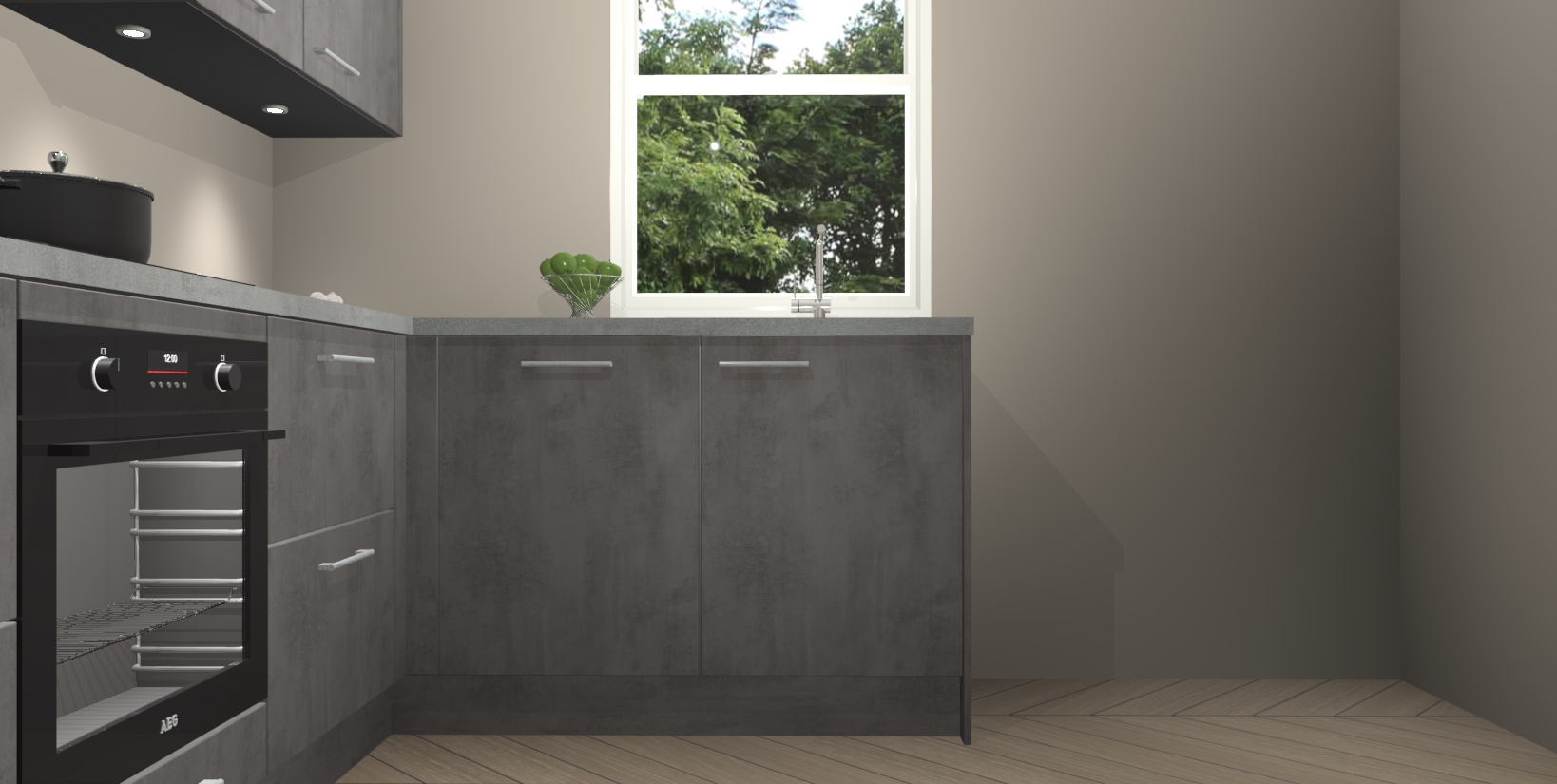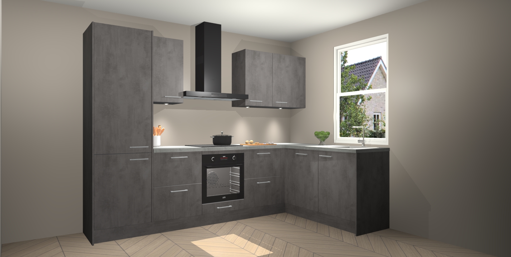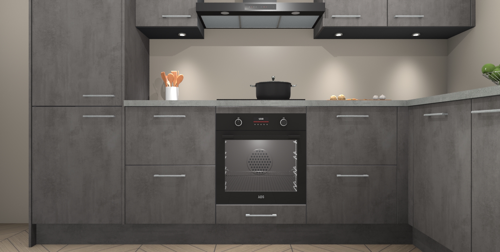 Maak kennis met de trendsettende en luxe Beton Antraciet keuken Bazel! Deze uitzonderlijke keuken van Duitse kwaliteit is stijlvol, modern en perfect om elk huis mee op te fleuren. De binnenkant van de kasten worden meegenomen in een bijpassende kleur om een samenhangende eigentijdse esthetiek te voltooien. U zult dol zijn op hoe uw pas gerenoveerde keuken eruitziet met de Beton Antraciet editie!