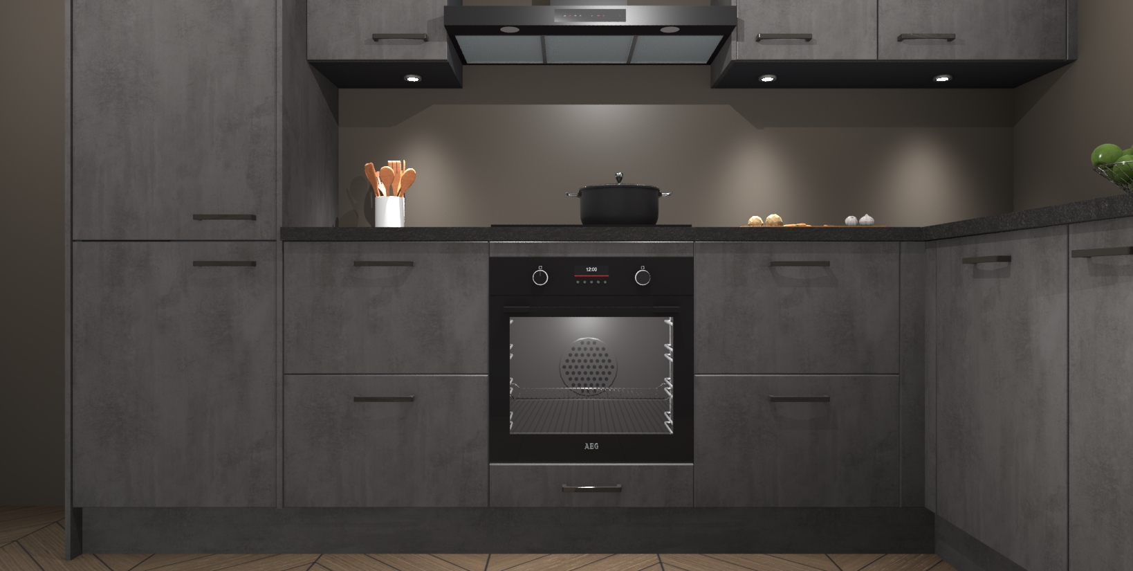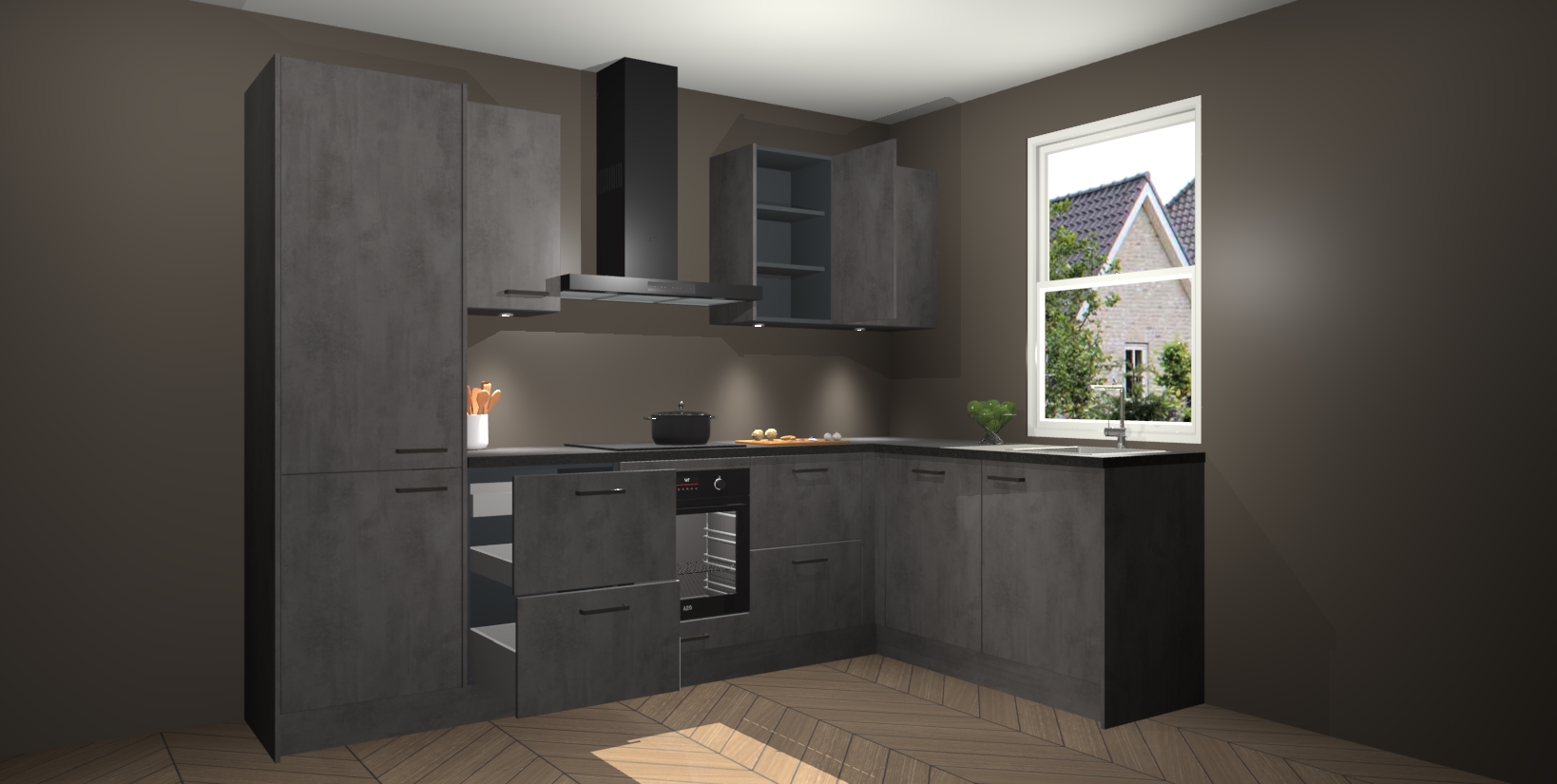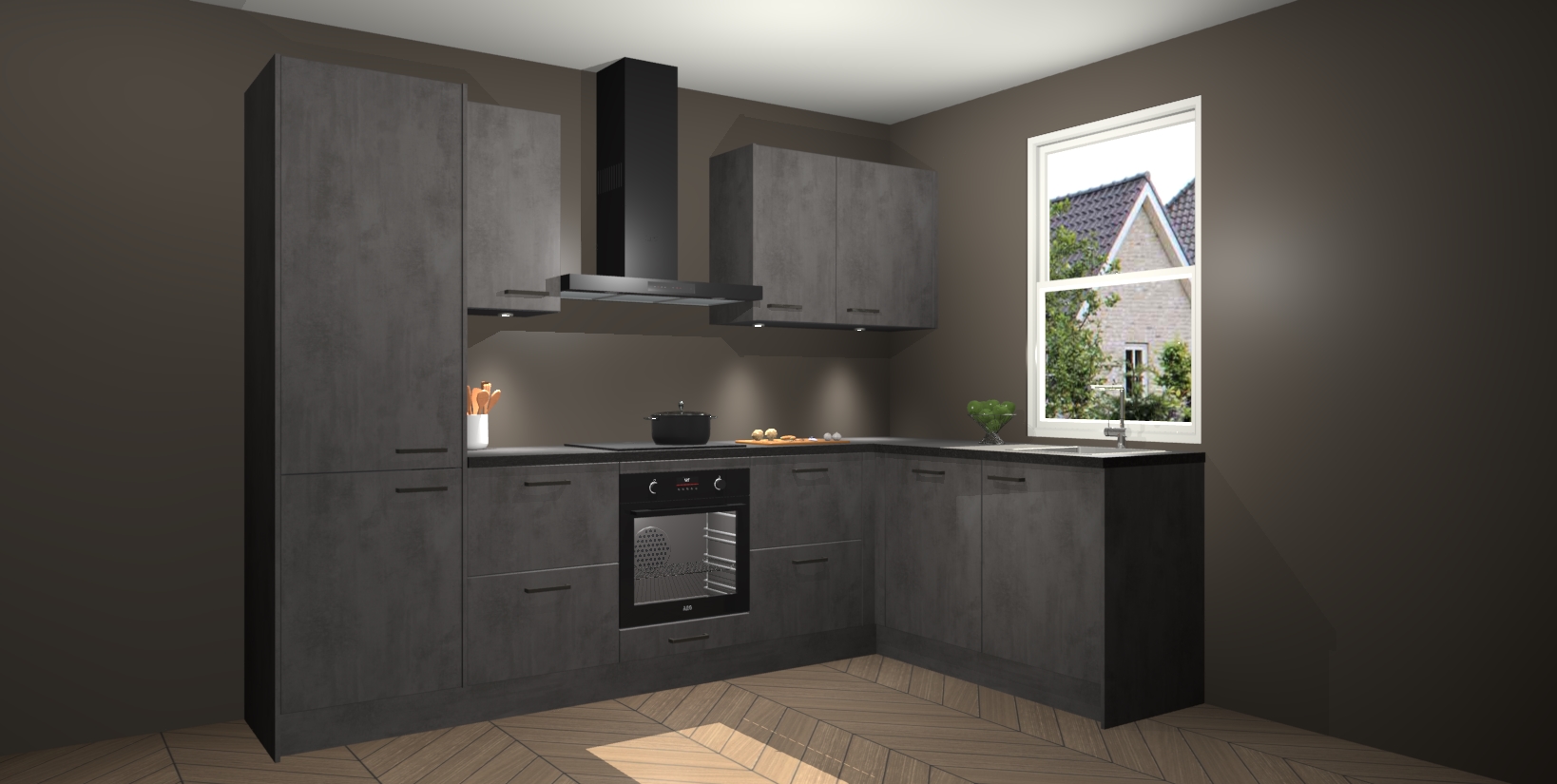 Maak kennis met de trendsettende en luxe Beton Antraciet keuken Bazel! Deze uitzonderlijke keuken van Duitse kwaliteit is stijlvol, modern en perfect om elk huis mee op te fleuren. De binnenkant van de kasten worden meegenomen in een bijpassende kleur om een samenhangende eigentijdse esthetiek te voltooien. U zult dol zijn op hoe uw pas gerenoveerde keuken eruitziet met de Beton Antraciet editie!