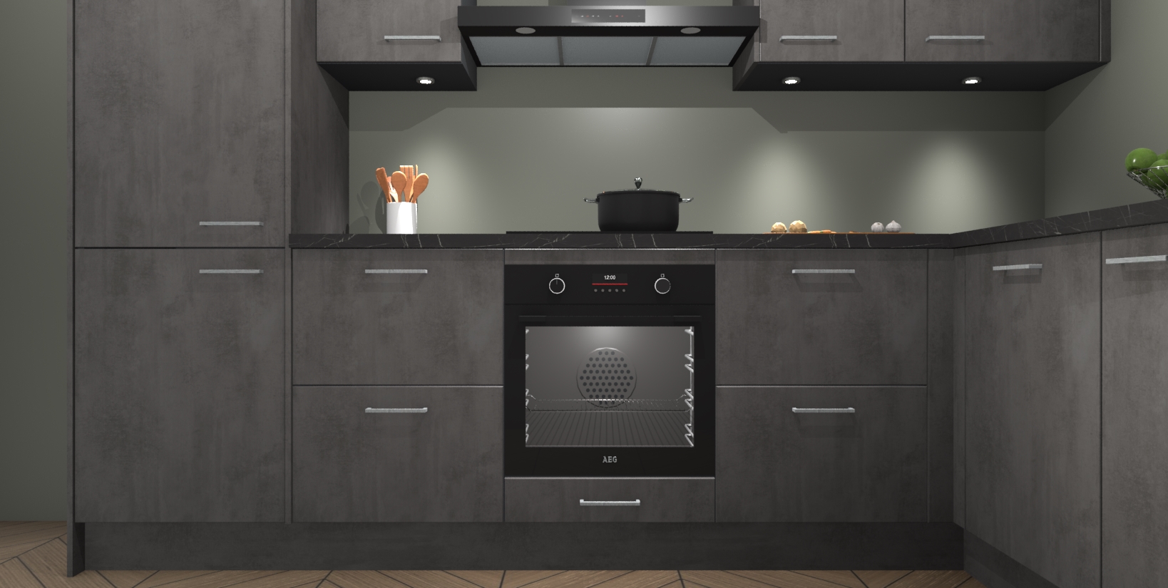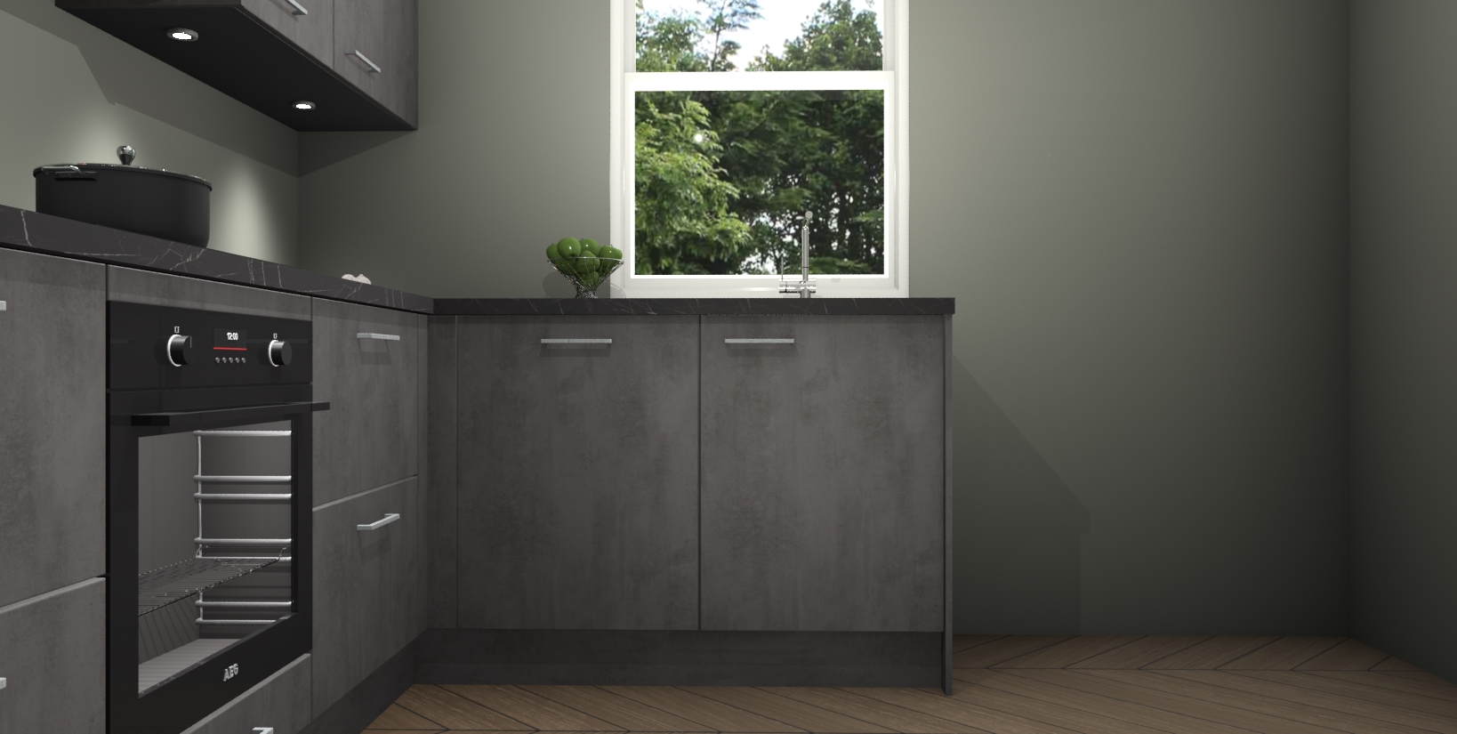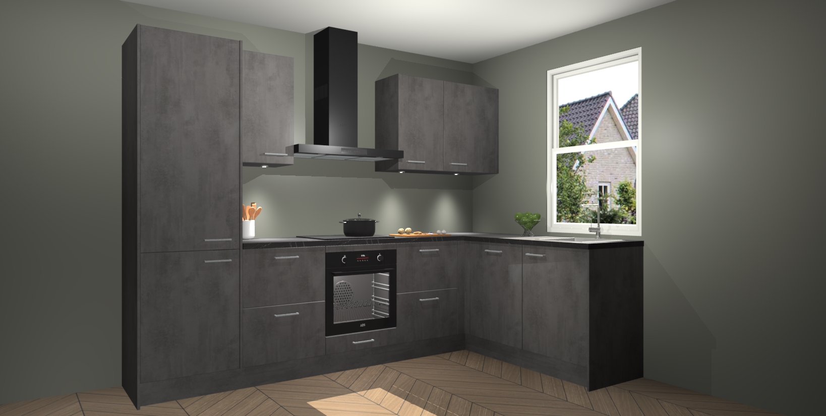 Maak kennis met de trendsettende en luxe Beton Antraciet keuken Bazel! Deze uitzonderlijke keuken van Duitse kwaliteit is stijlvol, modern en perfect om elk huis mee op te fleuren. De binnenkant van de kasten worden meegenomen in een bijpassende kleur om een samenhangende eigentijdse esthetiek te voltooien. U zult dol zijn op hoe uw pas gerenoveerde keuken eruitziet met de Beton Antraciet editie!