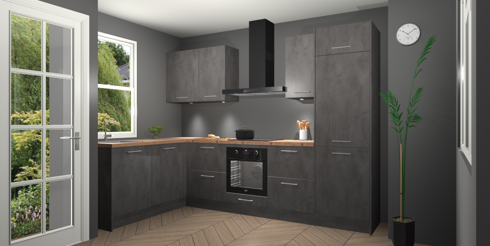 Bent u op zoek naar een strakke, moderne hoekkeuken die uw huis oppept en een moderne uitstraling geeft? Kijk dan niet verder dan de beton antraciet keuken Beijing. Deze verbluffende hoekkeuken tilt hedendaags design naar een hoger niveau. Qua stijl is deze chique hoekkeuken voorzien van beton antraciet accenten, om een strakke maar opvallende look te creëren. De binnenkant van de kasten is afgewerkt in dezelfde prachtige beton antraciet kleur voor extra esthetische aantrekkingskracht.