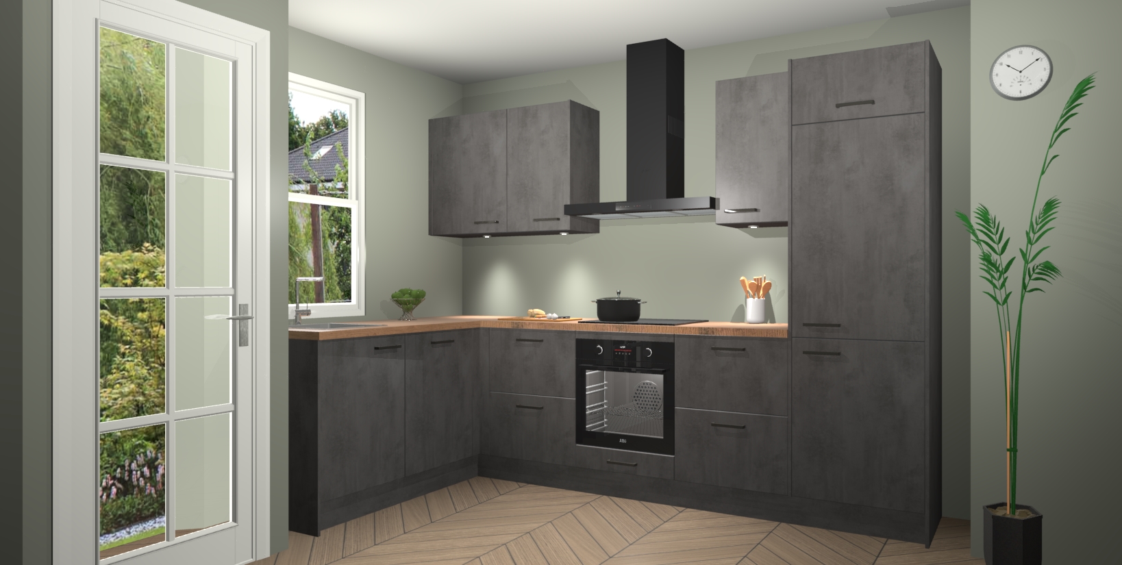 Bent u op zoek naar een strakke, moderne hoekkeuken die uw huis oppept en een moderne uitstraling geeft? Kijk dan niet verder dan de beton antraciet keuken Beijing. Deze verbluffende hoekkeuken tilt hedendaags design naar een hoger niveau. Qua stijl is deze chique hoekkeuken voorzien van beton antraciet accenten, om een strakke maar opvallende look te creëren. De binnenkant van de kasten is afgewerkt in dezelfde prachtige beton antraciet kleur voor extra esthetische aantrekkingskracht.