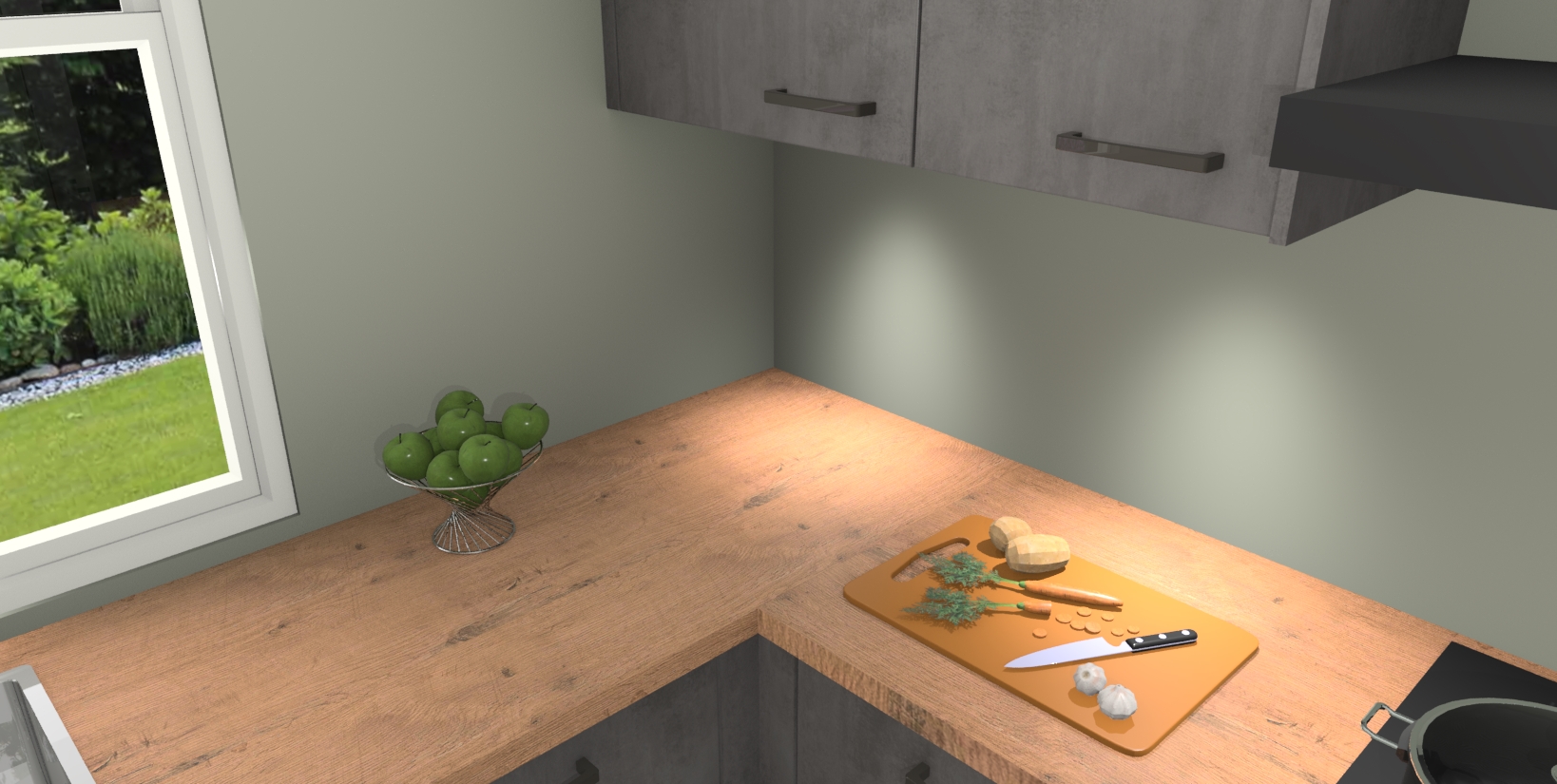 - Bij een hoekwerkblad zijn de hoeken in gevreesd en op maat gemaakt