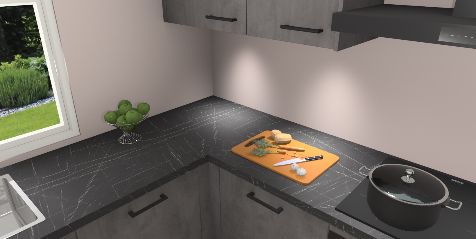 - Bij een hoekwerkblad zijn de hoeken in gevreesd en op maat gemaakt
