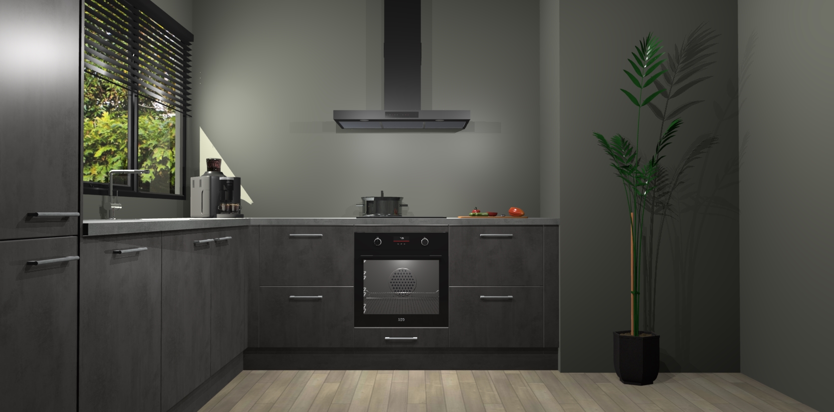 Met een modern, tijdloos design en ruime opslagruimte, zult u zich in no-time thuis voelen in uw nieuwe keuken. Uw leven wordt eenvoudiger met de soft-close deuren die voor het ultieme stille comfort zorgen - geen geluid dat u stoort terwijl u kookt. Ook is de keuken voorzien van 5 ingebouwde apparaten: een oven, inductie kookplaat, afzuigkap, vaatwasser en koelkast. Deze kunnen gemakkelijk na bestelling worden bijgewerkt naar AEG - waardoor uw luxe ervaring compleet is.