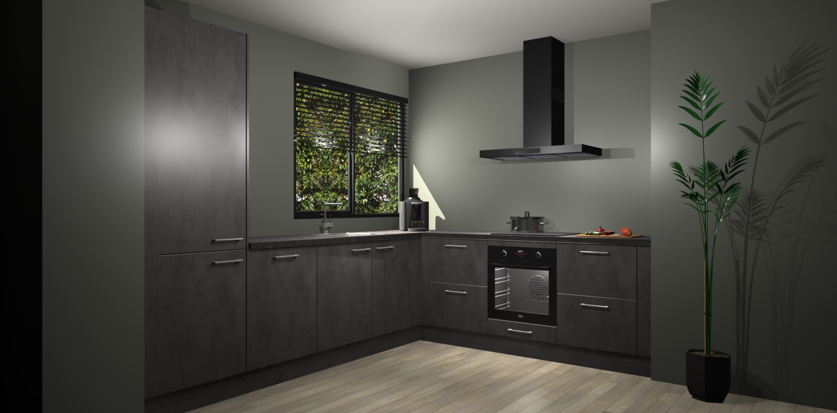 Wij presenteren de revolutie in keukens: de Beton Antraciet keuken Benidorm. Met modern design, een tijdloos uiterlijk en kasten die al voor gemonteerd worden geleverd, laat deze stijlvolle keuken uw kookervaring op een hele nieuwe manier transformeren.