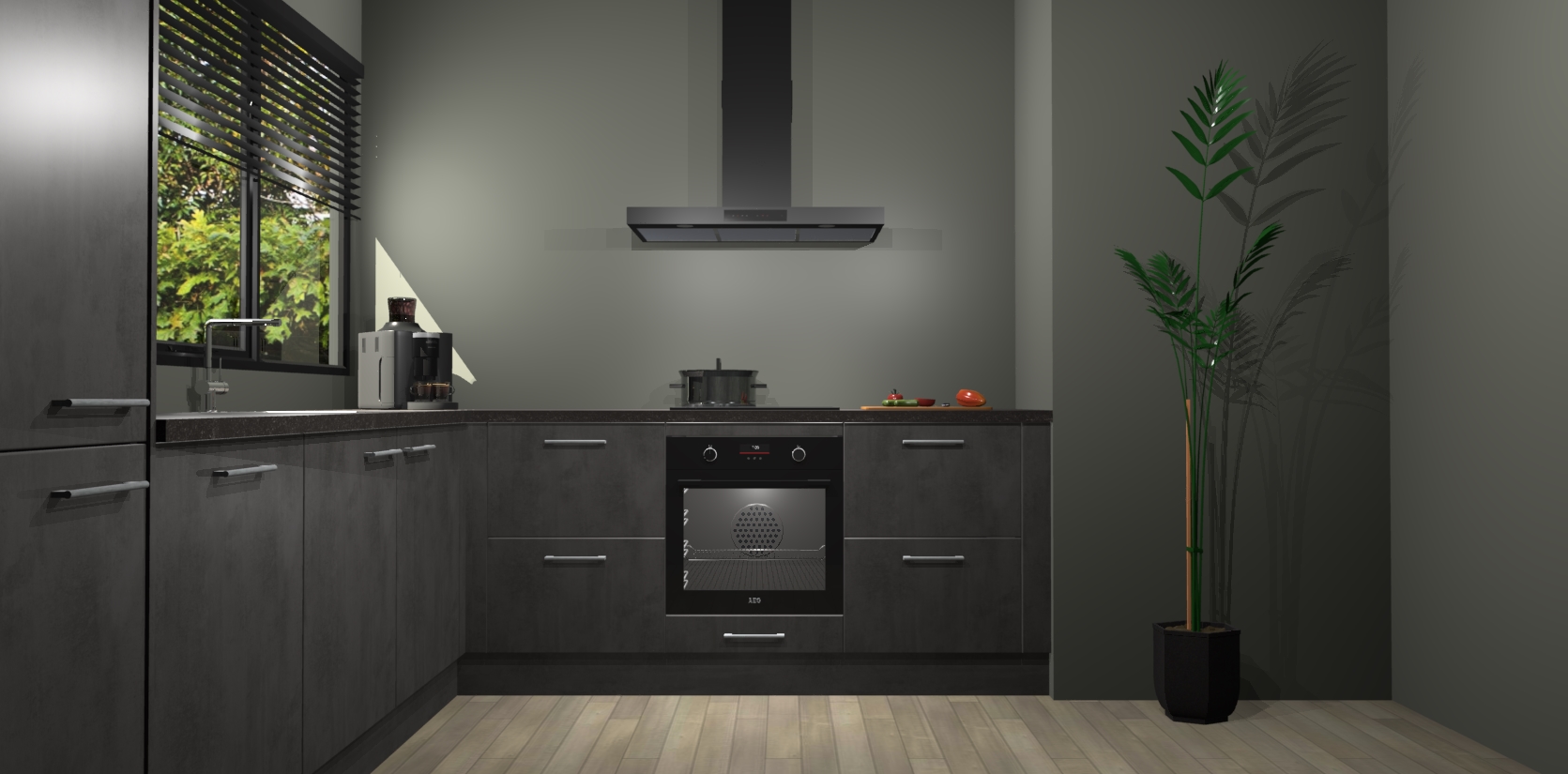 Met een modern, tijdloos design en ruime opslagruimte, zult u zich in no-time thuis voelen in uw nieuwe keuken. Uw leven wordt eenvoudiger met de soft-close deuren die voor het ultieme stille comfort zorgen - geen geluid dat u stoort terwijl u kookt. Ook is de keuken voorzien van 5 ingebouwde apparaten: een oven, inductie kookplaat, afzuigkap, vaatwasser en koelkast. Deze kunnen gemakkelijk na bestelling worden bijgewerkt naar AEG - waardoor uw luxe ervaring compleet is.