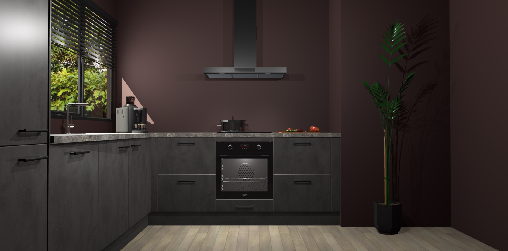 Met een modern, tijdloos design en ruime opslagruimte, zult u zich in no-time thuis voelen in uw nieuwe keuken. Uw leven wordt eenvoudiger met de soft-close deuren die voor het ultieme stille comfort zorgen - geen geluid dat u stoort terwijl u kookt. Ook is de keuken voorzien van 5 ingebouwde apparaten: een oven, inductie kookplaat, afzuigkap, vaatwasser en koelkast. Deze kunnen gemakkelijk na bestelling worden bijgewerkt naar AEG - waardoor uw luxe ervaring compleet is.