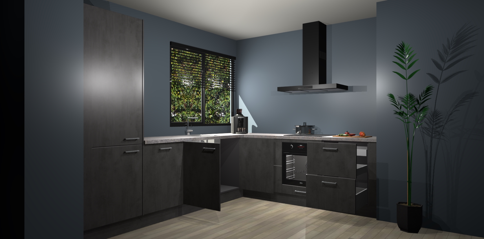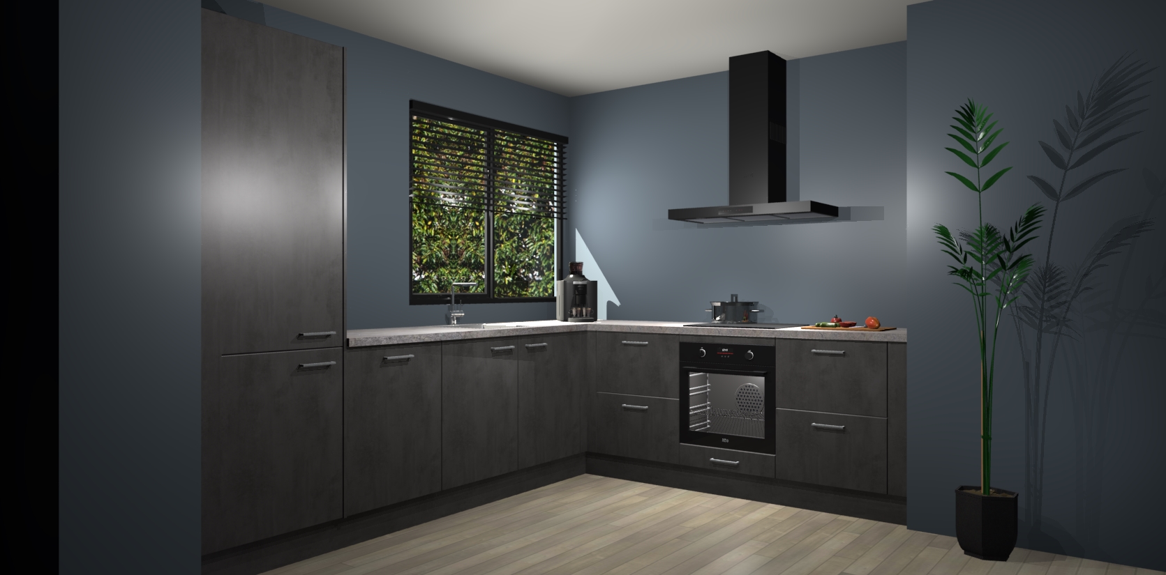 Wij presenteren de revolutie in keukens: de Beton Antraciet keuken Benidorm. Met modern design, een tijdloos uiterlijk en kasten die al voor gemonteerd worden geleverd, laat deze stijlvolle keuken uw kookervaring op een hele nieuwe manier transformeren.