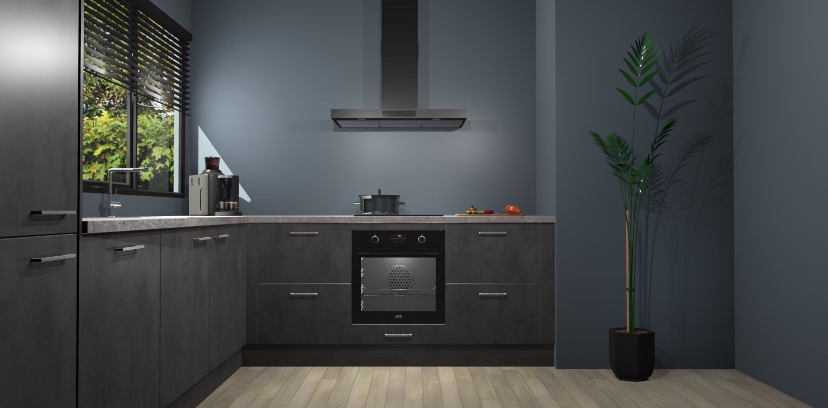 Met een modern, tijdloos design en ruime opslagruimte, zult u zich in no-time thuis voelen in uw nieuwe keuken. Uw leven wordt eenvoudiger met de soft-close deuren die voor het ultieme stille comfort zorgen - geen geluid dat u stoort terwijl u kookt. Ook is de keuken voorzien van 5 ingebouwde apparaten: een oven, inductie kookplaat, afzuigkap, vaatwasser en koelkast. Deze kunnen gemakkelijk na bestelling worden bijgewerkt naar AEG - waardoor uw luxe ervaring compleet is.