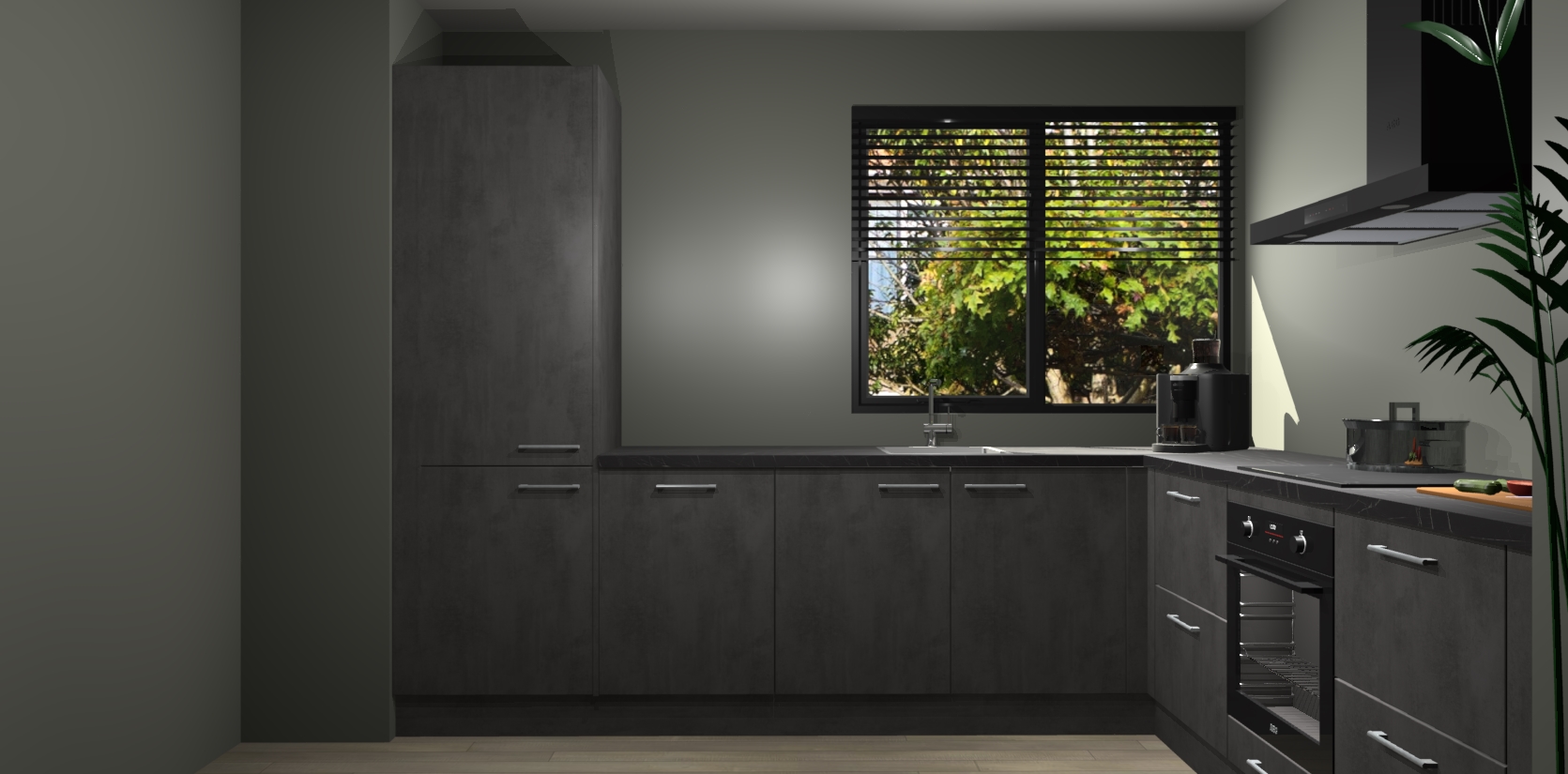 Wij presenteren de revolutie in keukens: de Beton Antraciet keuken Benidorm. Met modern design, een tijdloos uiterlijk en kasten die al voor gemonteerd worden geleverd, laat deze stijlvolle keuken uw kookervaring op een hele nieuwe manier transformeren.
